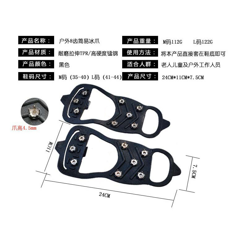 Outdoor non-slip 8-tooth ice claw snow men’s and women’s elderly universal ice surface lightweight silicone snow grip shoes protection thick
