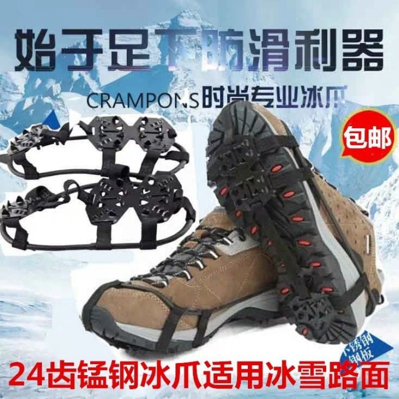 | nameOriginal | Outdoor non-slip crampons 24 teeth manganese steel fishing hiking snow ground nail climbing ice rock climbing shoe cover snow catch 1 pair free shipping |
