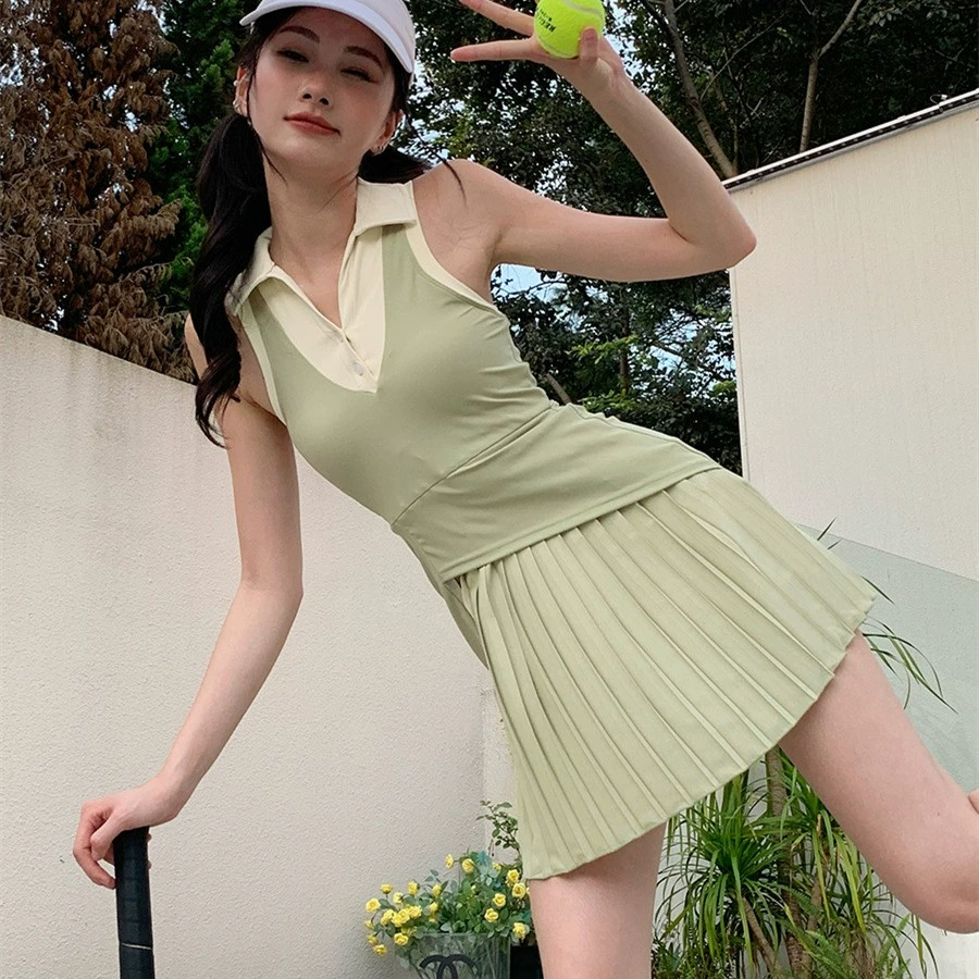 | nameOriginal | Outdoor nude pleated skirt with shoulder straps and golf pads |