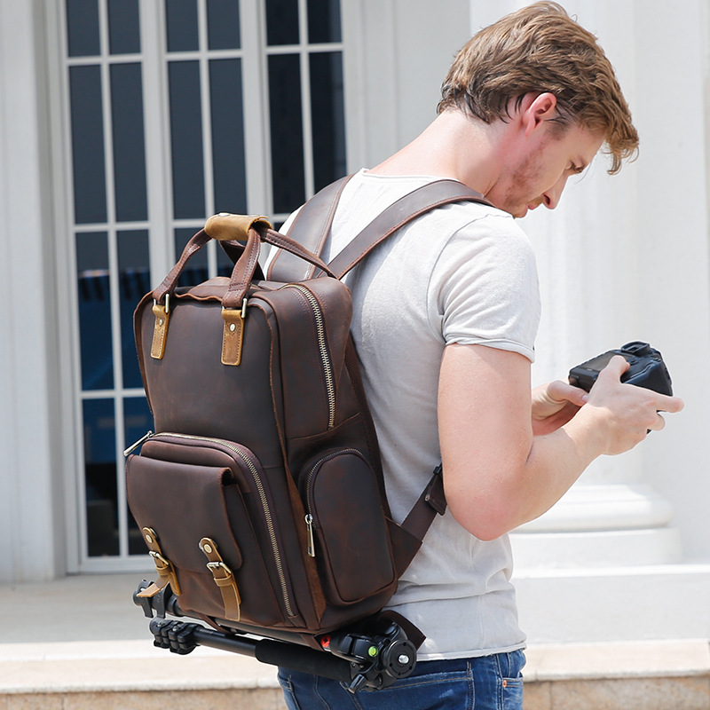| nameOriginal | Outdoor Photography Bag Vintage Crazy Horse Leather Backpack Leather SLR Camera Bag Detachable Liner Camera Backpack |