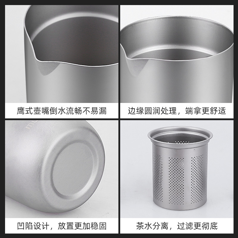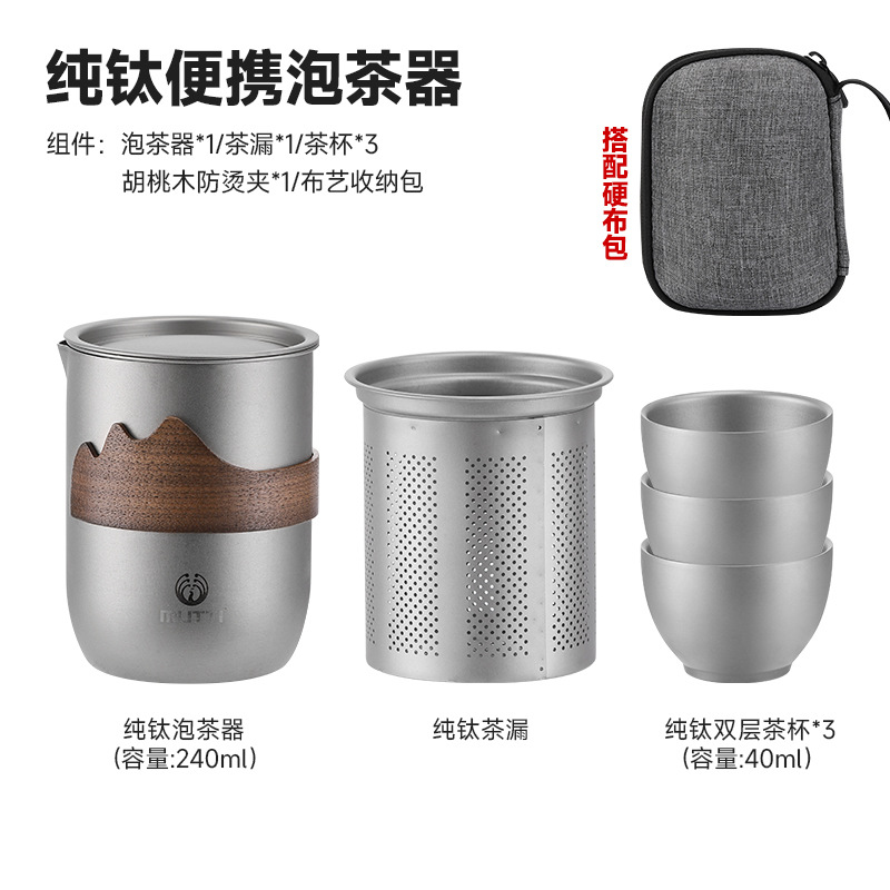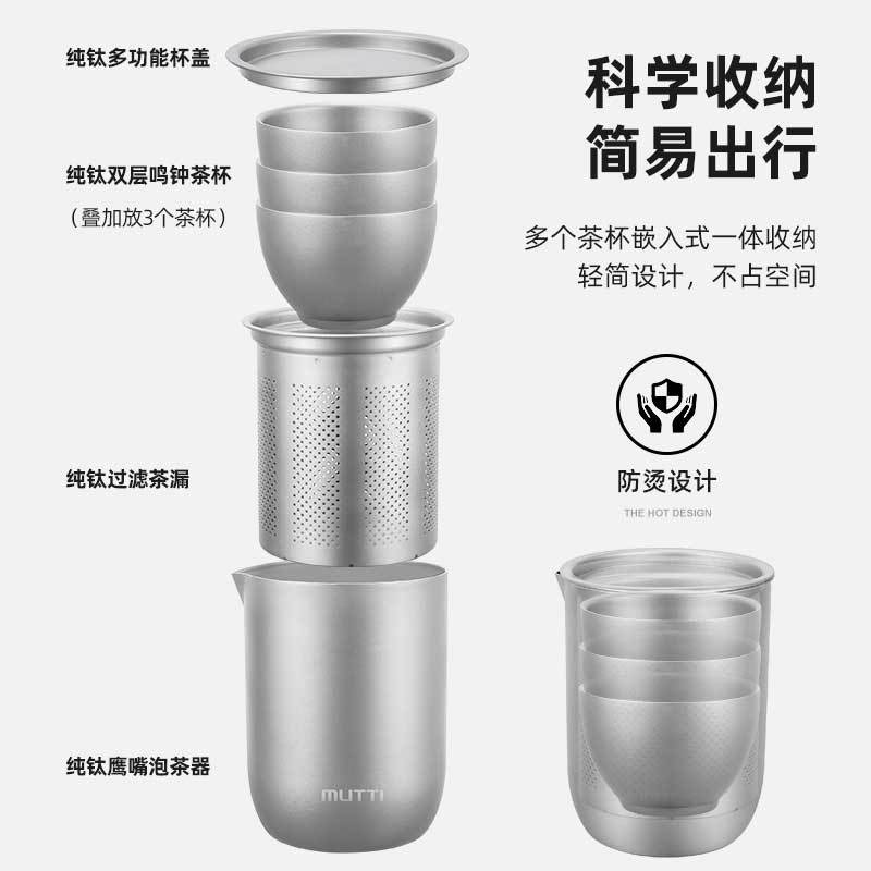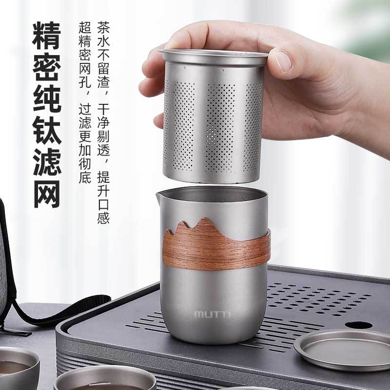 Outdoor Portable Guckmouth Pure Titanium Tea Maker Pure Titanium Double Layer Express Cup Travel Pack Multi-person Kung Fu Tea Set