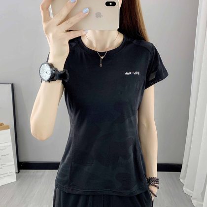 Outdoor Quick-drying T-shirt Women’s Sports Running Fitness Loose Round Neck Camouflage Thin Micro-elastic Summer Short-sleeved Quick-drying Clothes