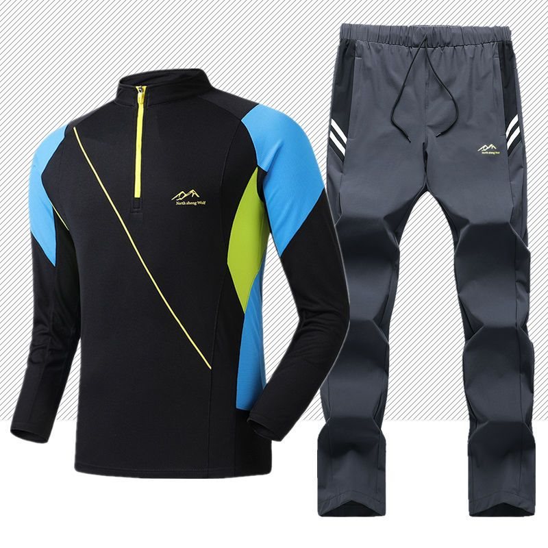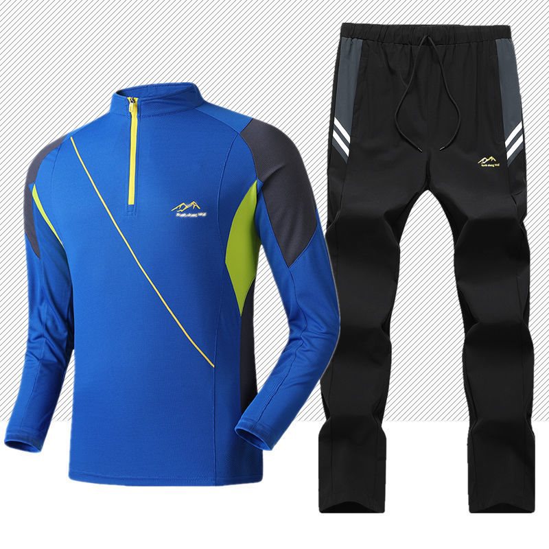 Outdoor Quick-drying Trouser Set Men’s Thin 2021 Summer plus size Sports Fitness Elastic Breathable Quick-drying Long-sleeved T-shirt