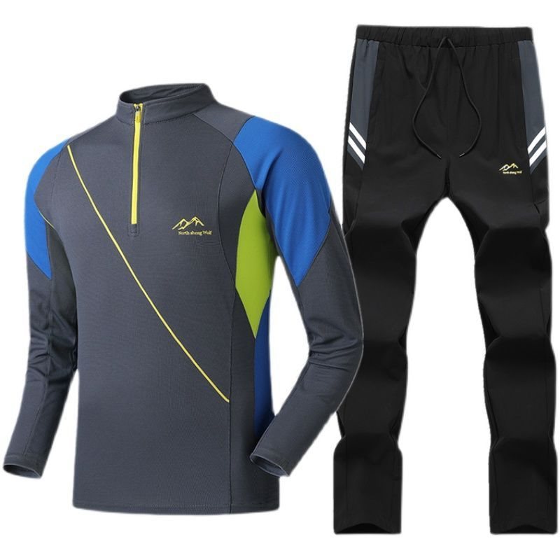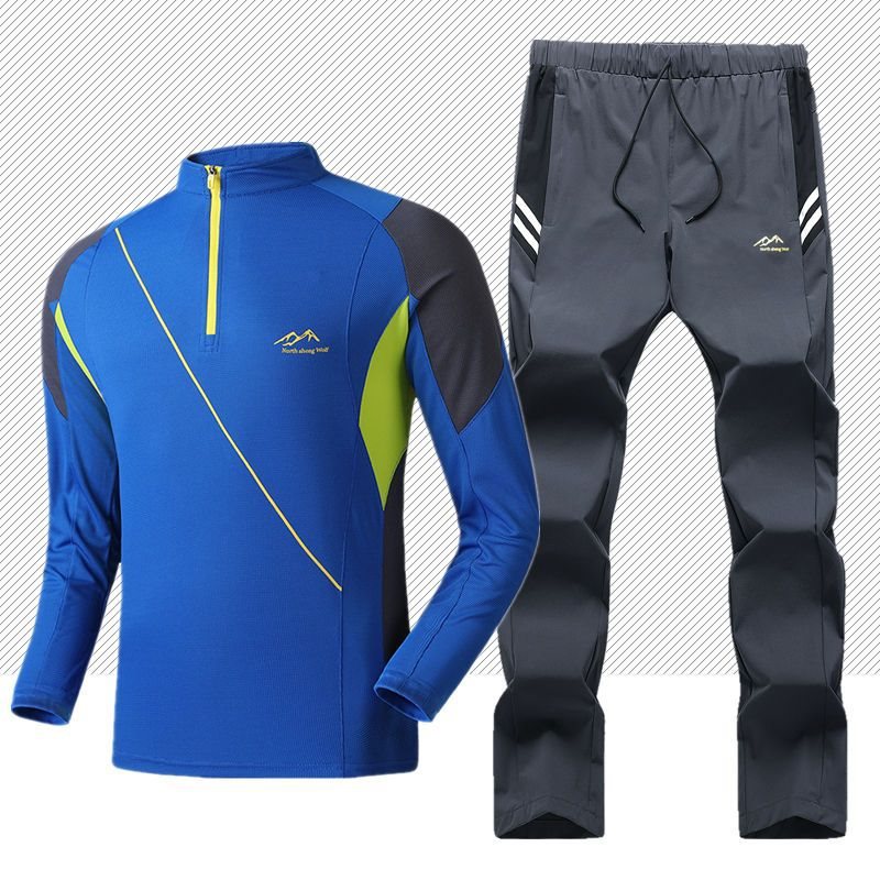 Outdoor Quick-drying Trouser Set Men's Thin 2021 Summer plus size Sports Fitness Elastic Breathable Quick-drying Long-sleeved T-shirt