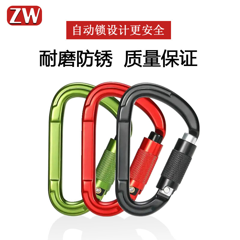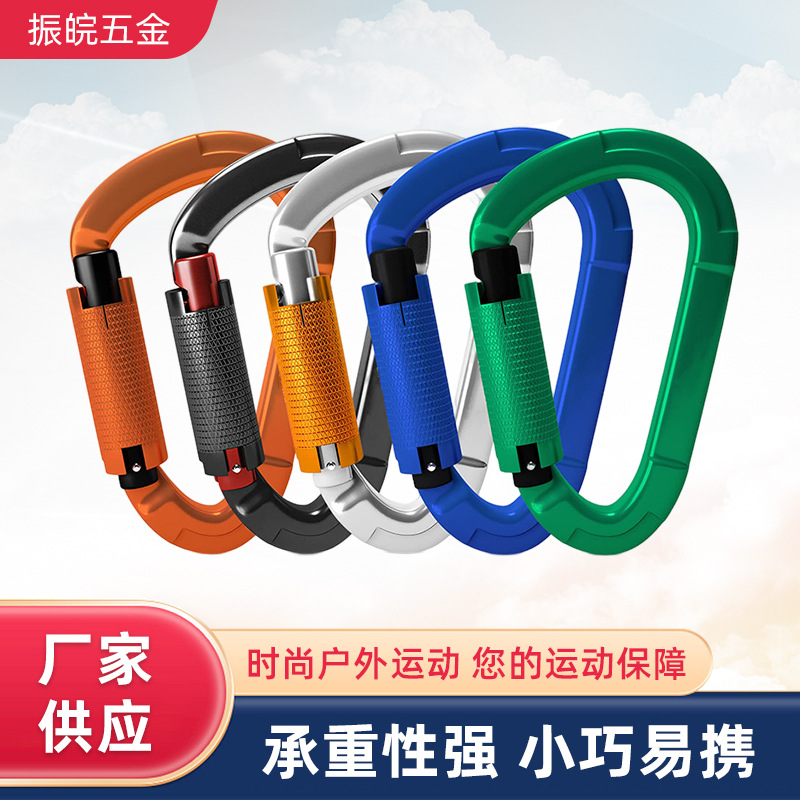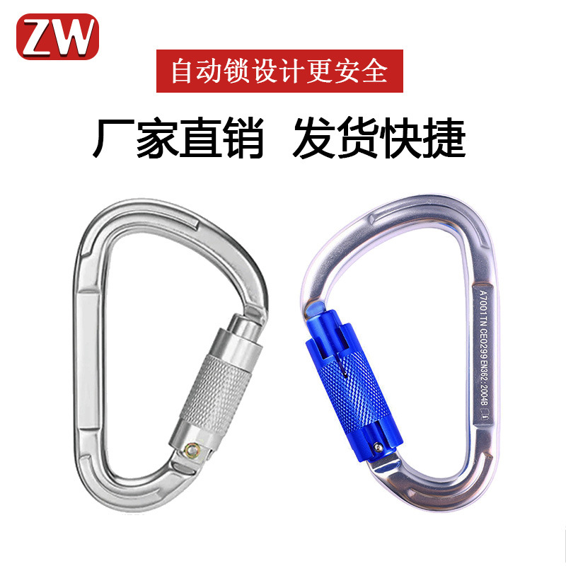 Outdoor rock climbing D-type automatic main lock quick hanging carabiner hammock hook aluminum alloy main lock blue shell A7001TN