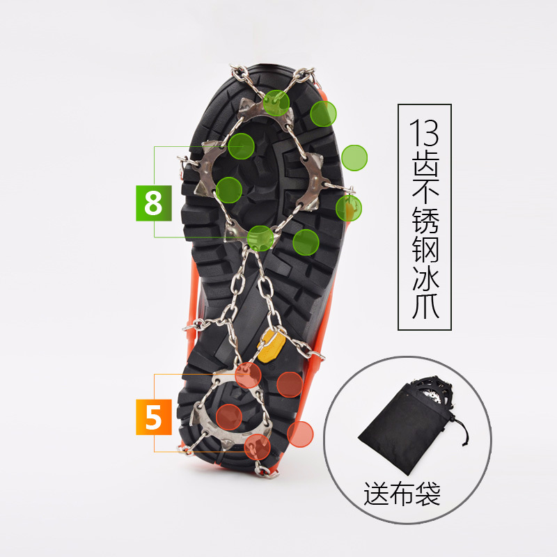 | nameOriginal | Outdoor Stainless Steel 13 Tooth Ice Claw Mountain Climbing Ice Claw Winter Enhanced Non-Slip Shoe Cover Shoe Chain Ice Grab |