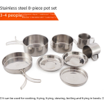 | nameOriginal | Outdoor Stainless Steel 8-Piece Set Pot Mountaineering Camping Portable Set Bowl BBQ Pot 5-6 Folding Combination Set  |