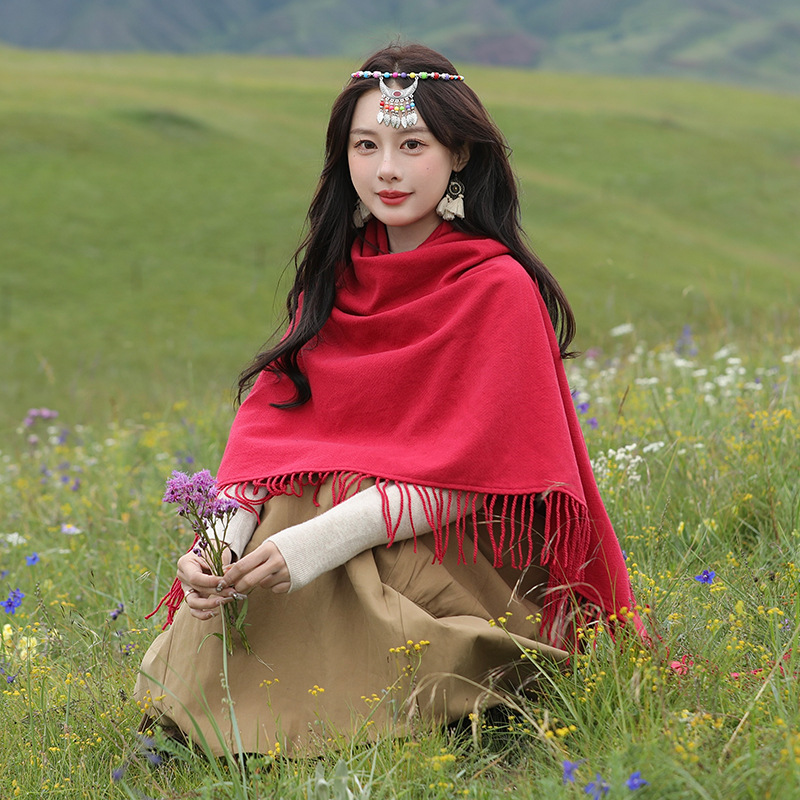 | nameOriginal | Outdoor travel photography shawl ethnic style comfortable breathable outer scarf casual all-match tassel cloak large cloak |
