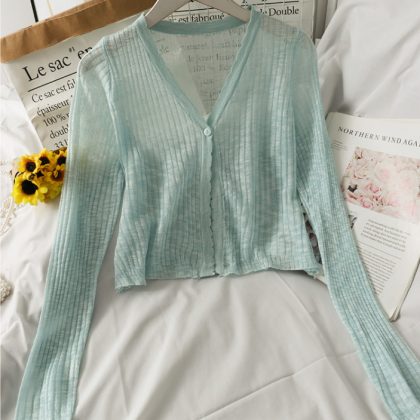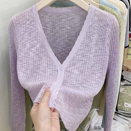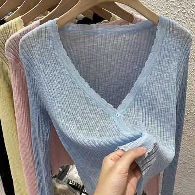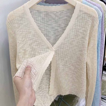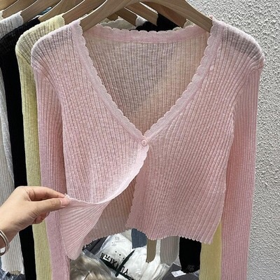 Outer Sunscreen Coat Summer Short Top Long Sleeve Chanel Style Knitted Cardigan Thin Women