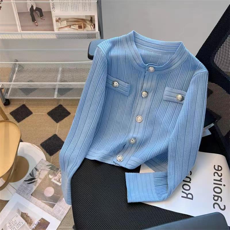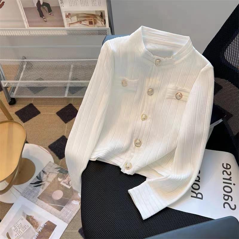 Outer Wear Knitwear 2023 Autumn New Slim-fit Solid Color Base Shirt Lazy Style Design Niche Cardigan Top