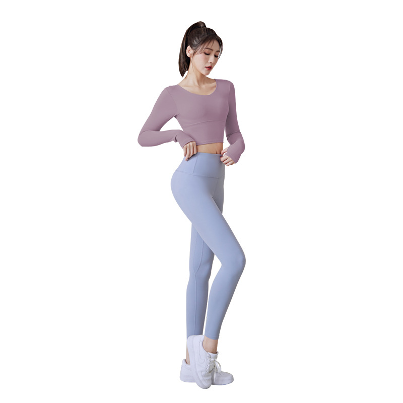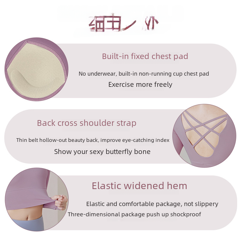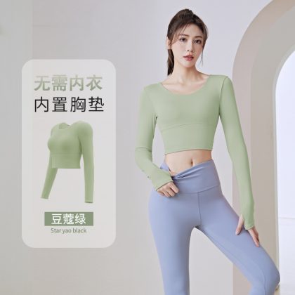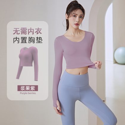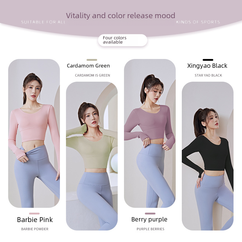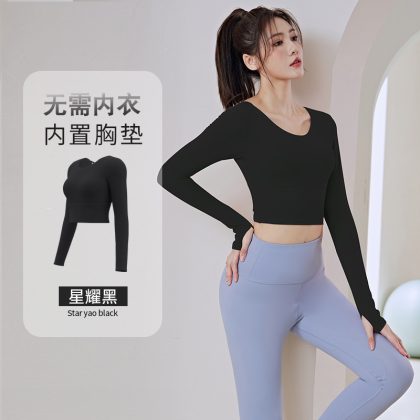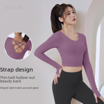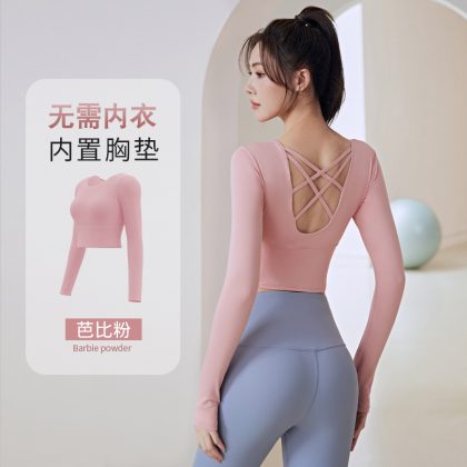 Outer Wear with Fixed Chest Pad Navel-exposed Back Cross Hollow-out Beautiful Back Running Fitness Tight Long Sleeve Yoga Suit
