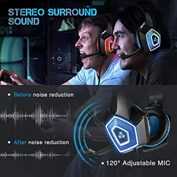 The Micolindun V1 gaming headset with microphone boasts high-precision neodymium drivers that deliver stereo surround sound with exceptional clarity across all frequencies. Its sleek and stylish design, complete with eye-catching light effects, makes it a must-have for professional gamers. The ergonomic design ensures comfort during extended use, making it perfect for gaming, watching movies, or listening to music.