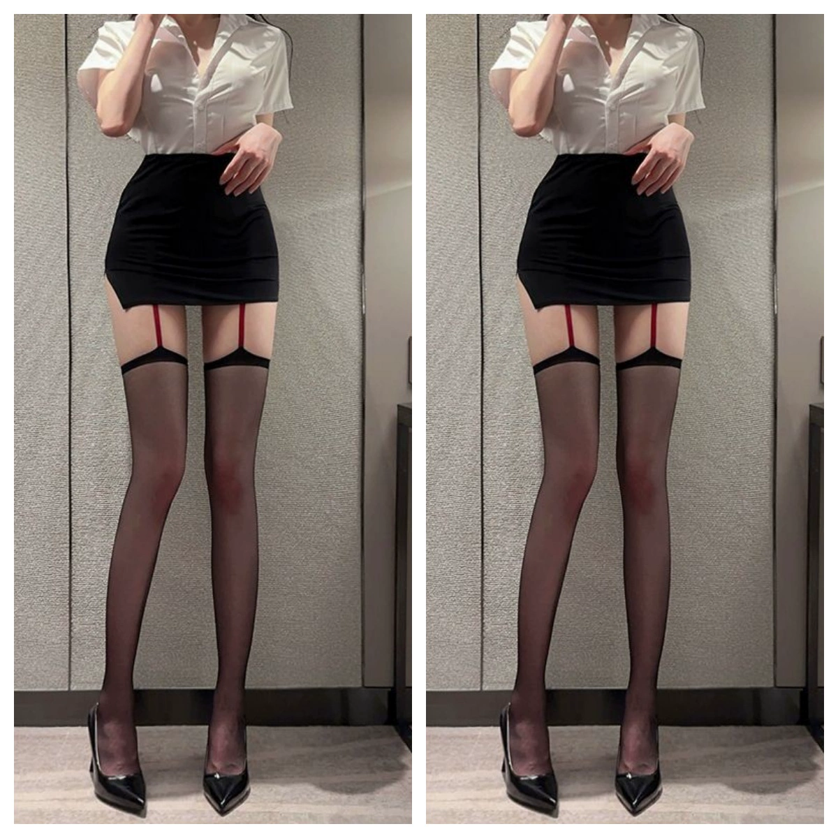 | nameOriginal | Over-the-knee socks for women, ultra-thin, red edge, pure lust, white silk suspenders |