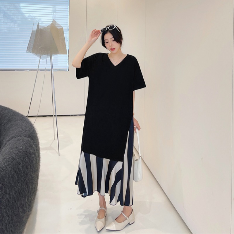 | nameOriginal | Over-the-knee V-neck summer loose flesh-covering short-sleeved T-shirt dress |