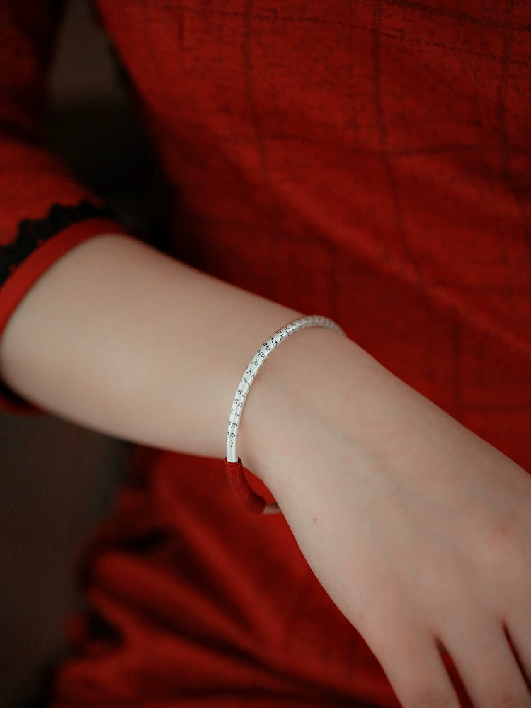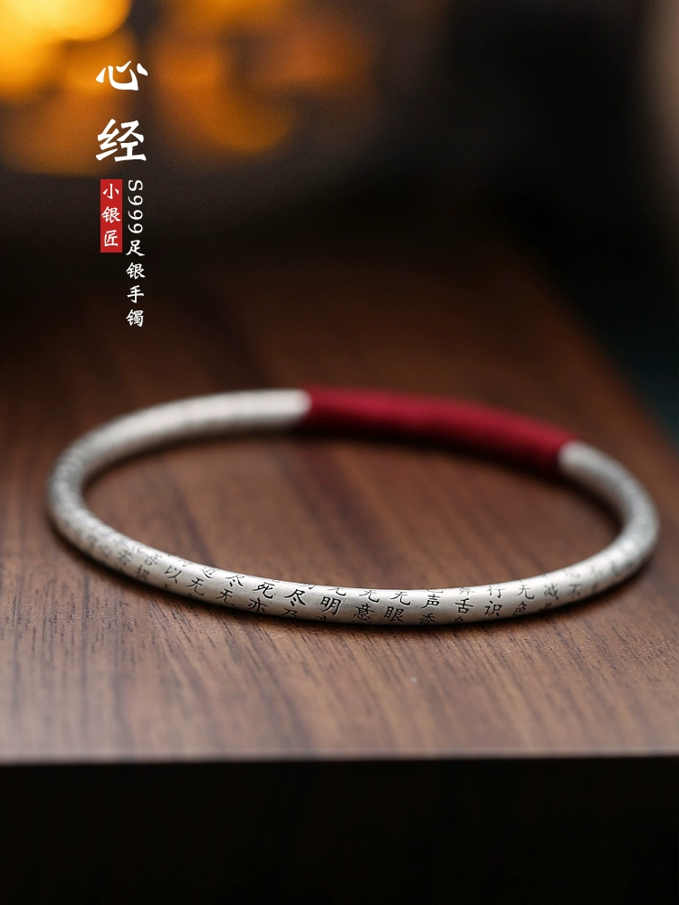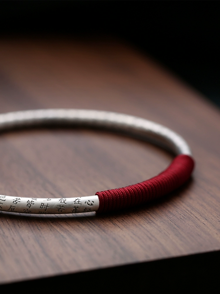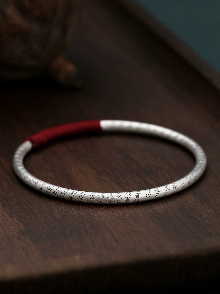 | nameOriginal | Overcome all hardships 999 pure silver heart sutra bracelet for women sterling silver matte solid closed mouth fine antique style niche design |