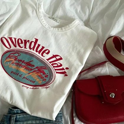 overdue red word retro distressed printed round neck short sleeve T-shirt girl loose top Taiyan same style