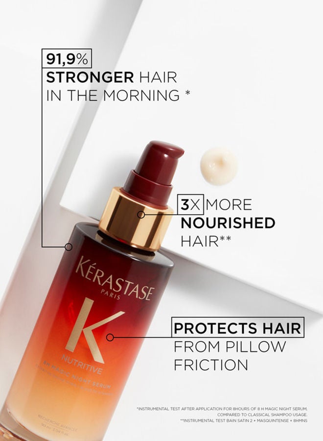 In addition to the Nutritive 8h Magic Night Serum, this set also includes a complimentary Elixir Ultime Oil, which is a luxurious and lightweight hair oil that helps to nourish and protect your hair from damage. This oil is perfect for all hair types, and can be used daily to help keep your hair looking and feeling healthy, shiny, and beautiful.