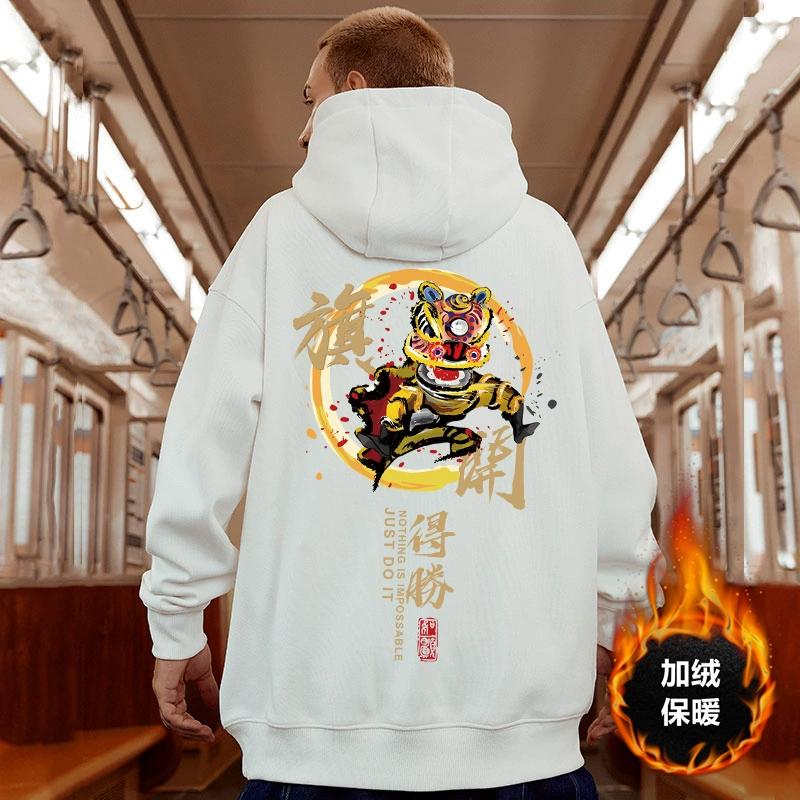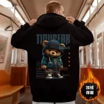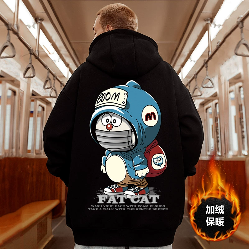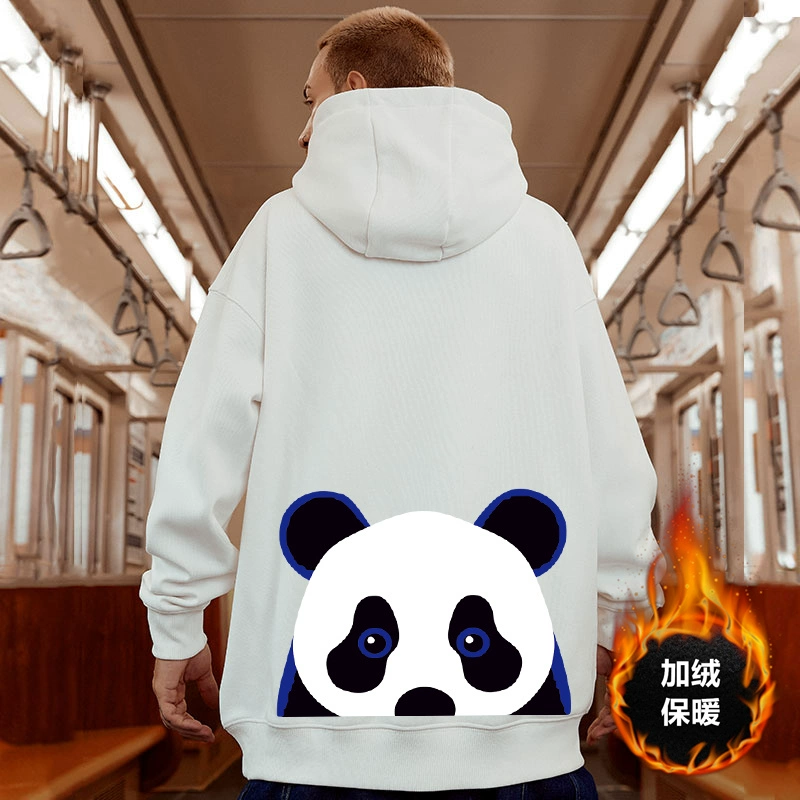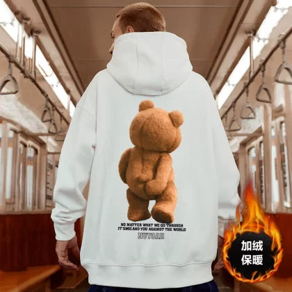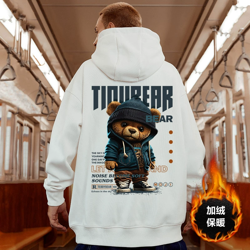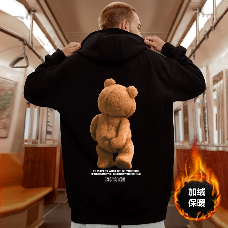 oversize national fashion brand bear plus velvet thickened hooded pullover sweatshirt men's loose plus fat large size hoodie jacket