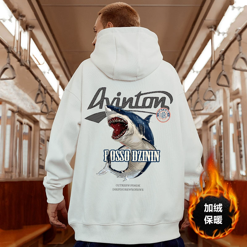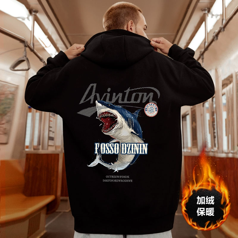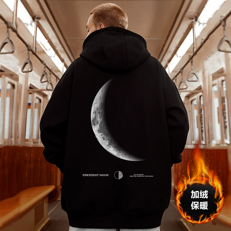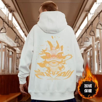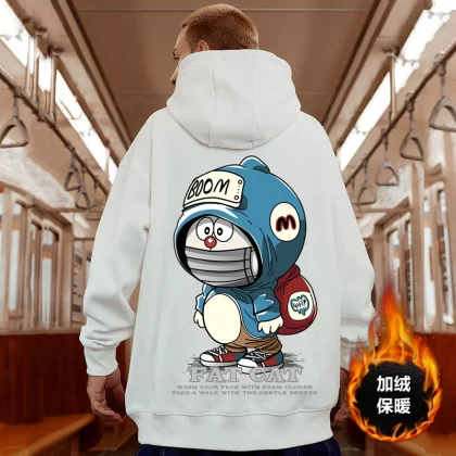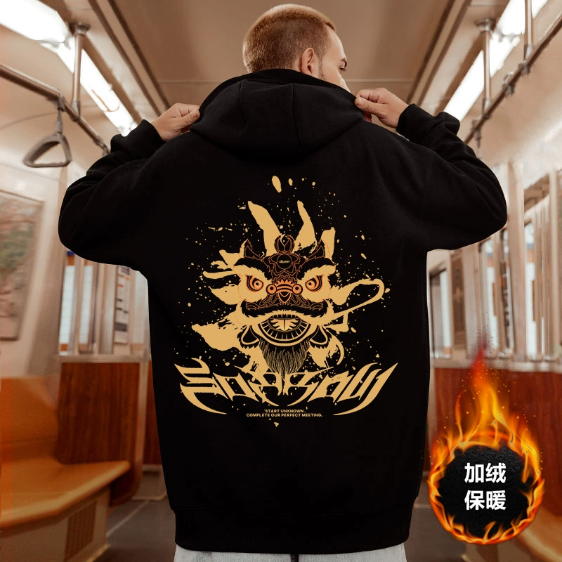 oversize national fashion brand bear plus velvet thickened hooded pullover sweatshirt men's loose plus fat large size hoodie jacket