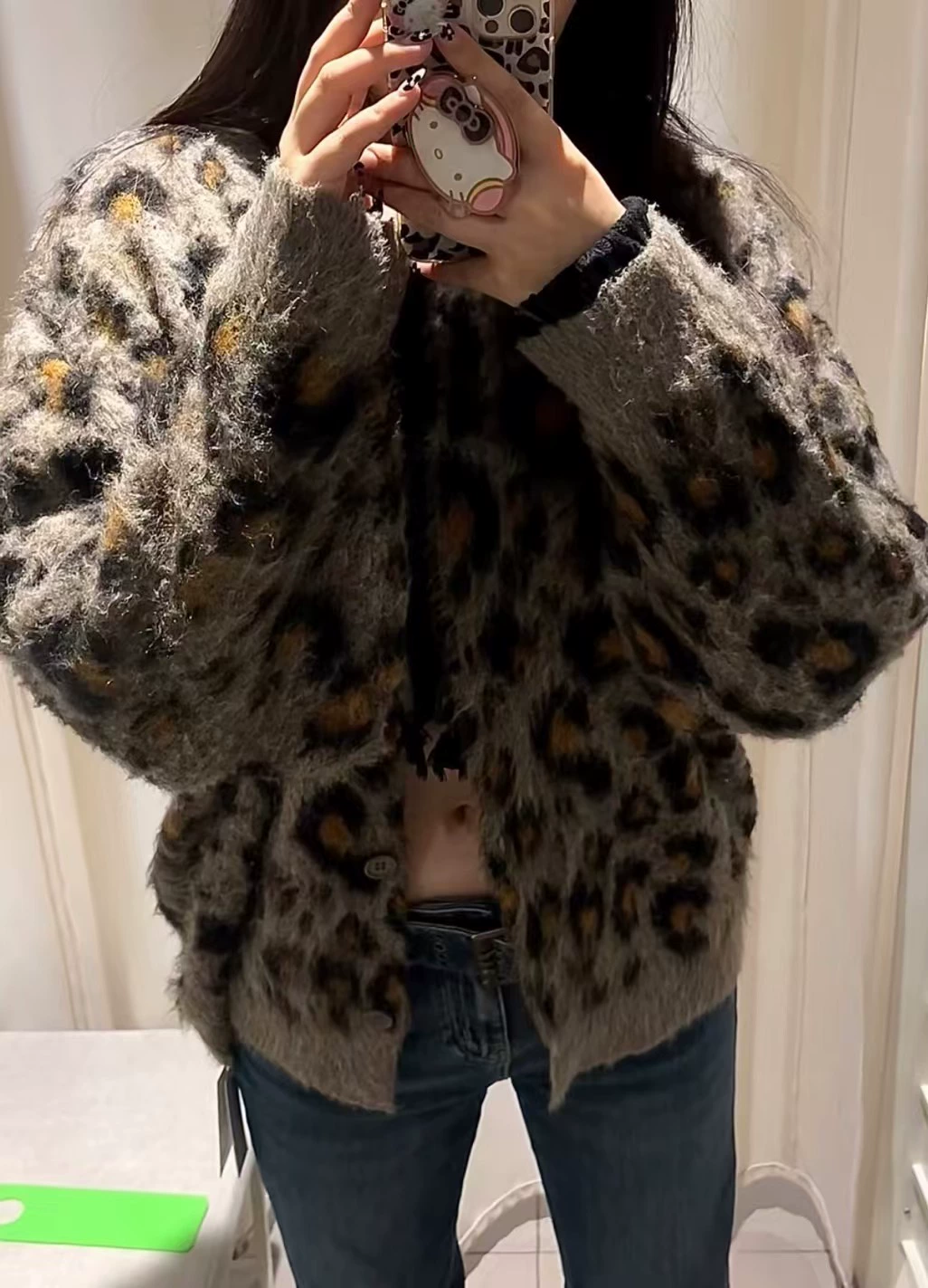 oversize single-breasted Korean style loose leopard print sweater