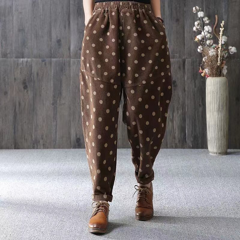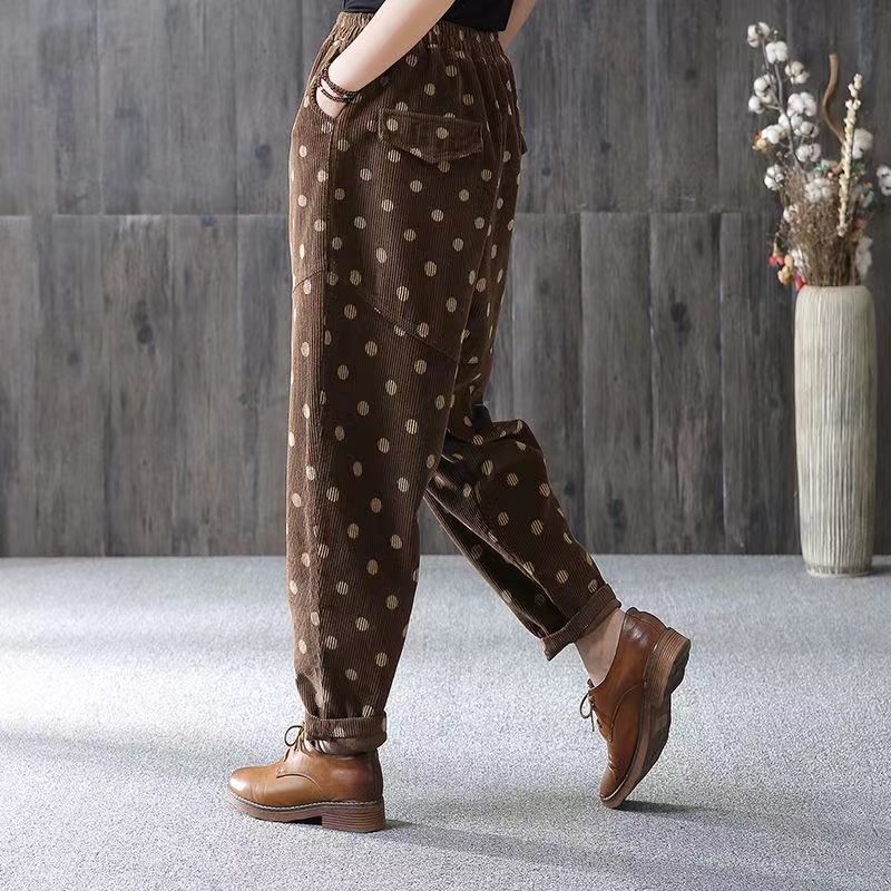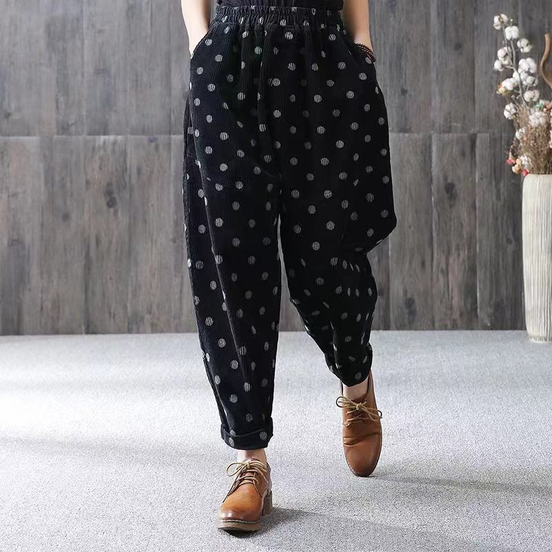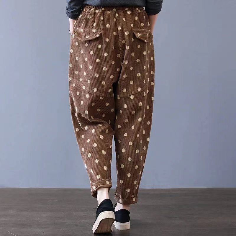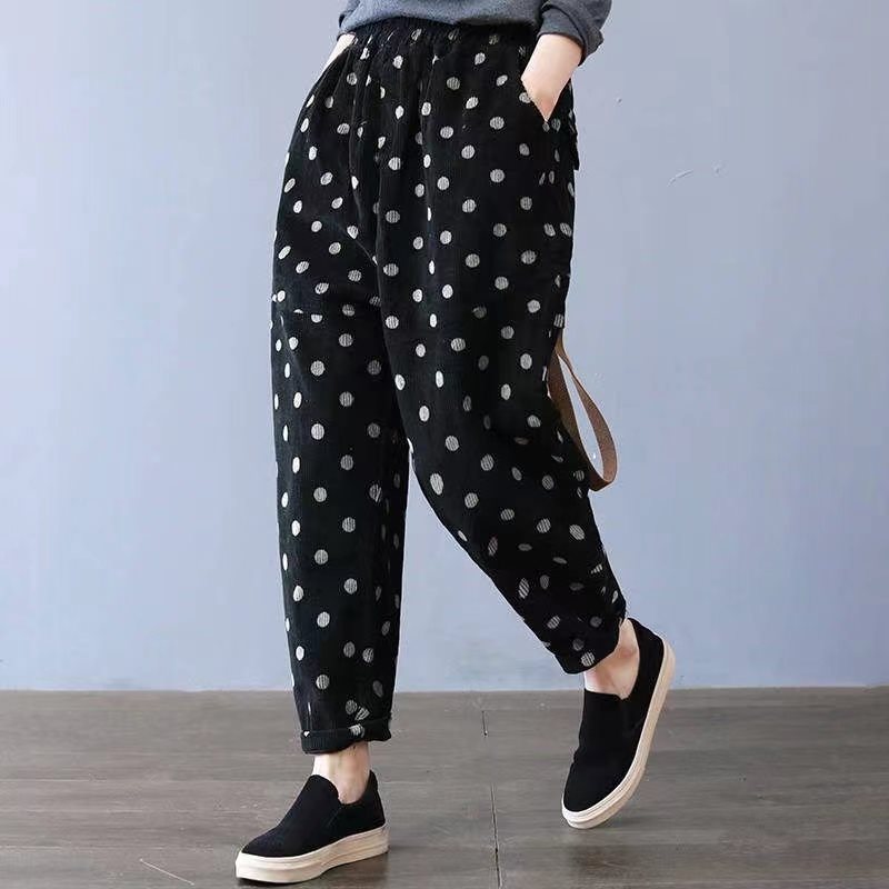 | nameOriginal | Oversize Women's chubby girl Autumn High Waist Polka Dot Corduroy Casual Pants Women's Loose Slimming All-match Harlan Pants |