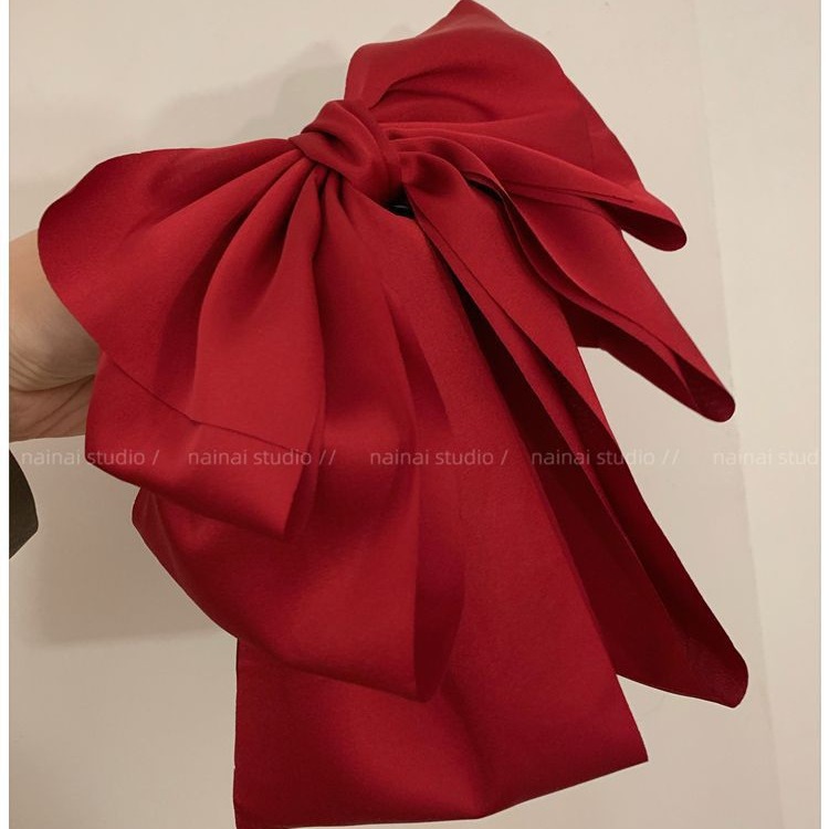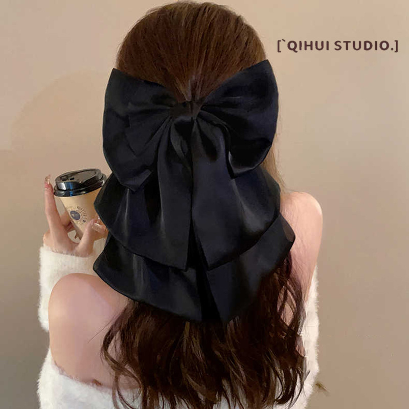 Oversized bow hairpin satin updo black elegant Internet celebrity hair clip back head hairpin clip headdress hair accessories