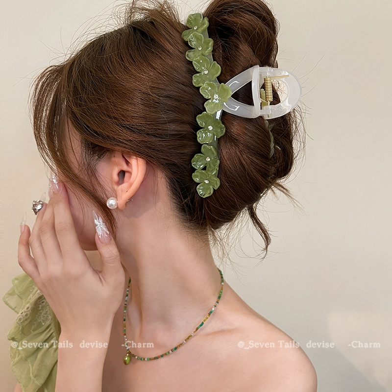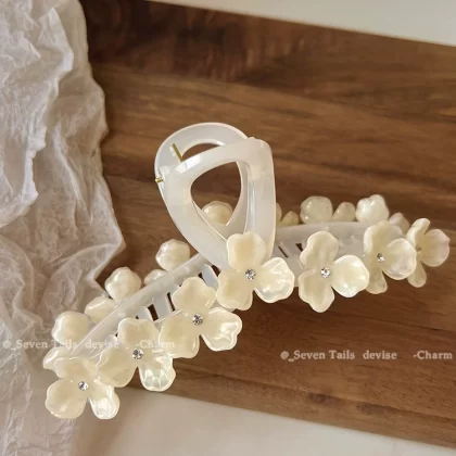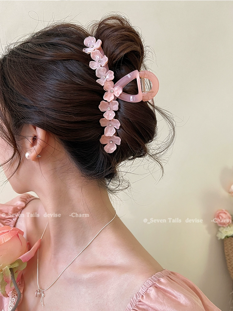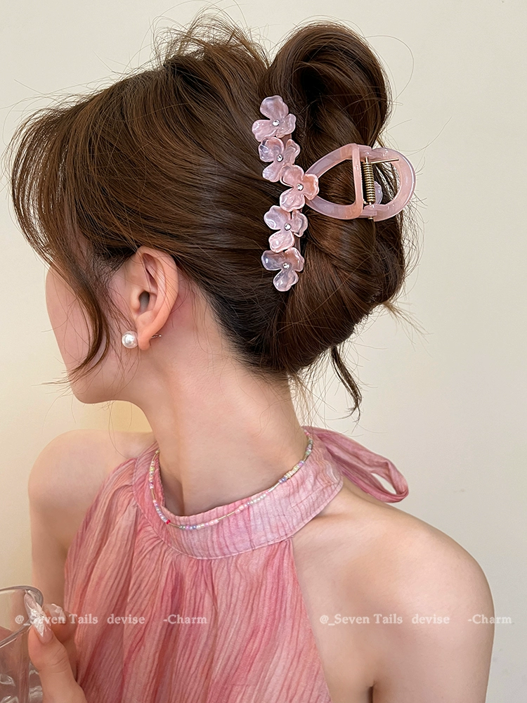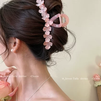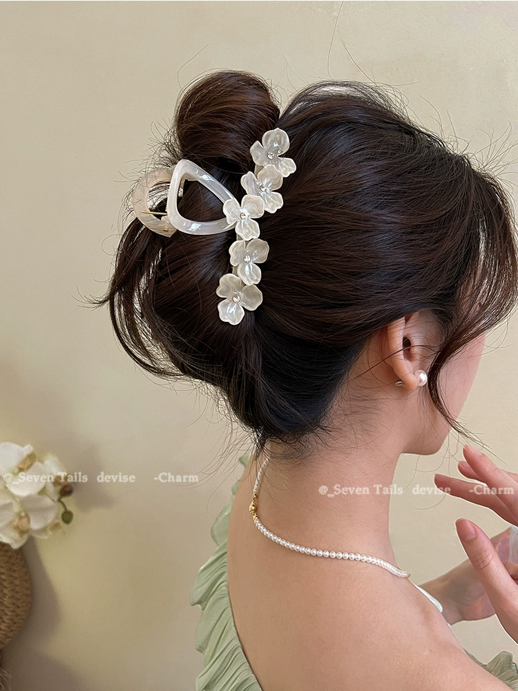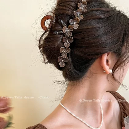 Oversized elegant and high-end flower hairpin at the back of the head