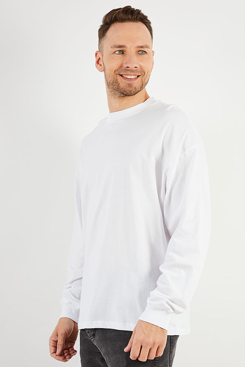 Care : Machine washable, Fit : Oversized Fit, Size shown : International, Sleeve Length : Long Sleeve, T-Shirt Style : Crew Neck, Type of Hem : Straight hem , Type of Neckline & Collar : Crew neckline , Fabrics : 100% Cotton, Occasion : Casual, Pattern & Print : Graphic print, Types of Closures : Pullover, Color Family : White,