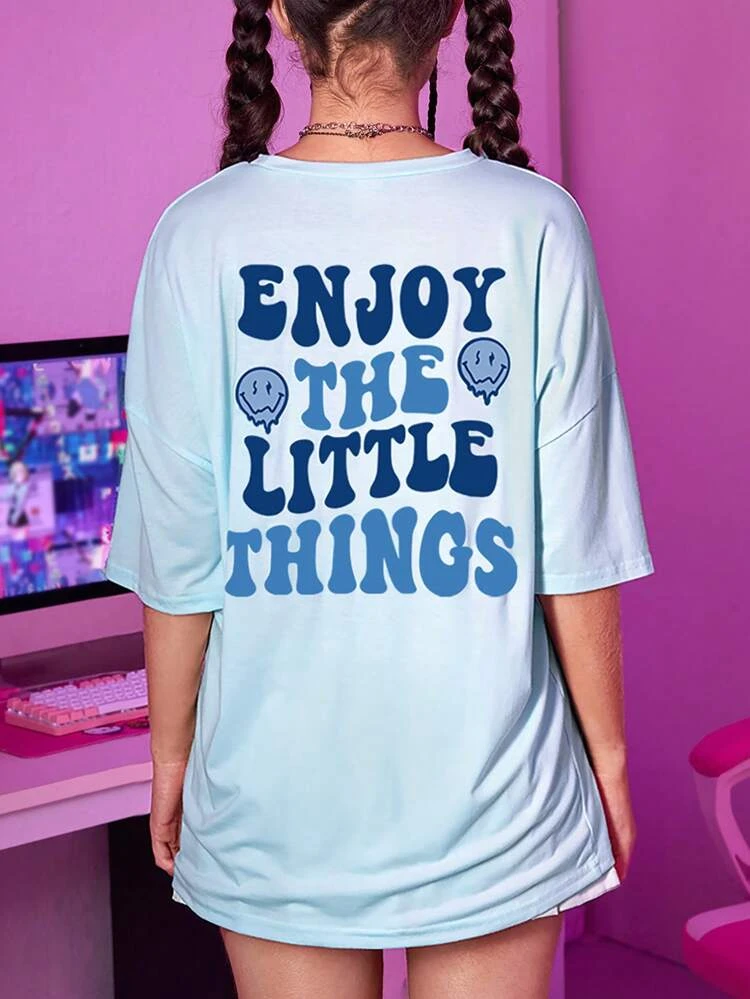 ROMWE Street Life Slogan Cartoon Graphic Oversized Tee