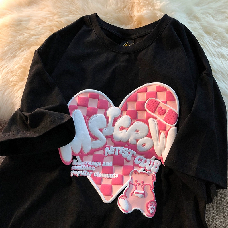 oversizet-shirt women's short-sleeved tee pink pure cotton design niche bestie couple wear half-sleeved chic top