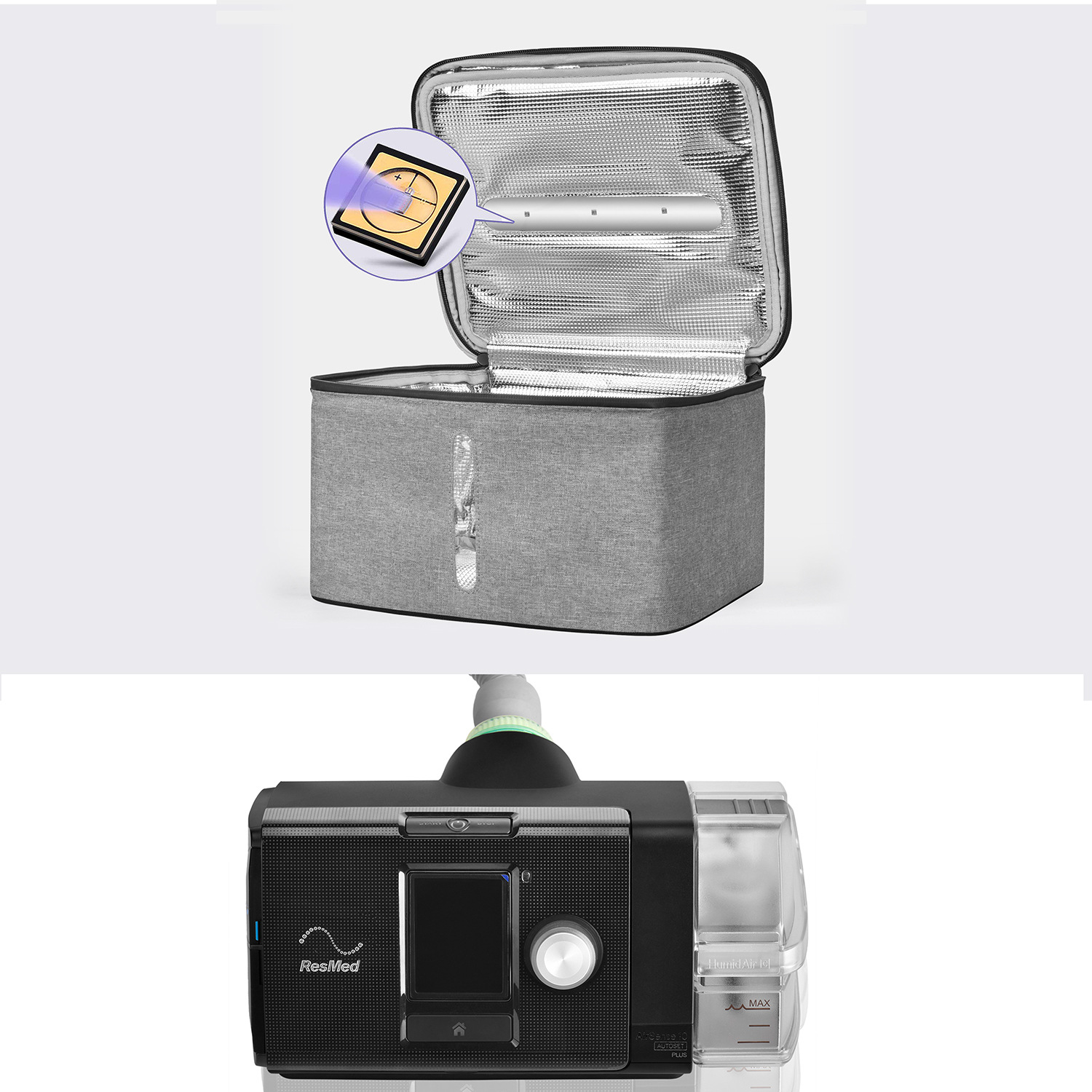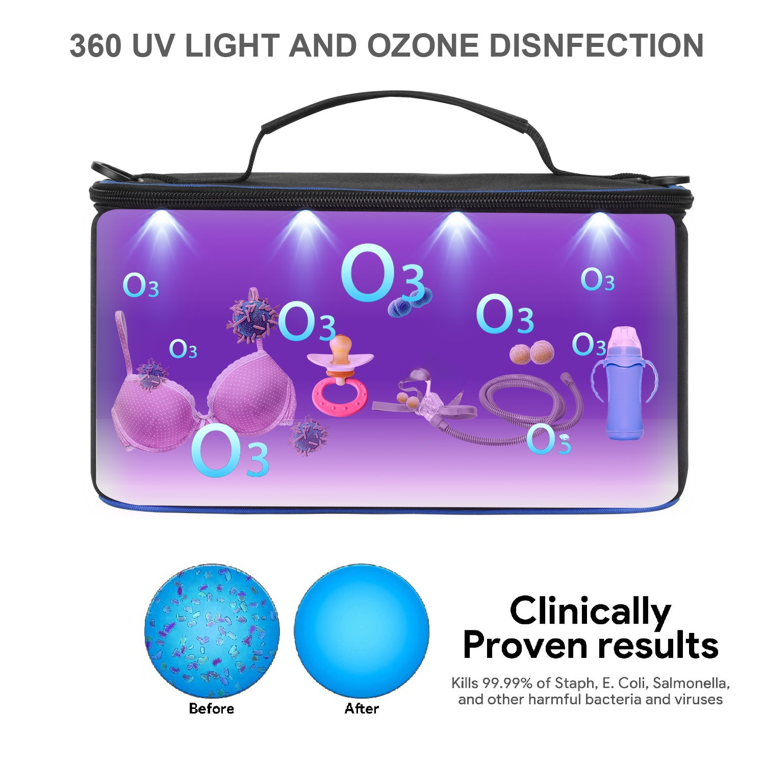 | nameOriginal | Ozone disinfection bag LED ultraviolet sterilization bag mask mobile phone infrared temperature measurement portable uvc disinfection mommy bag |
