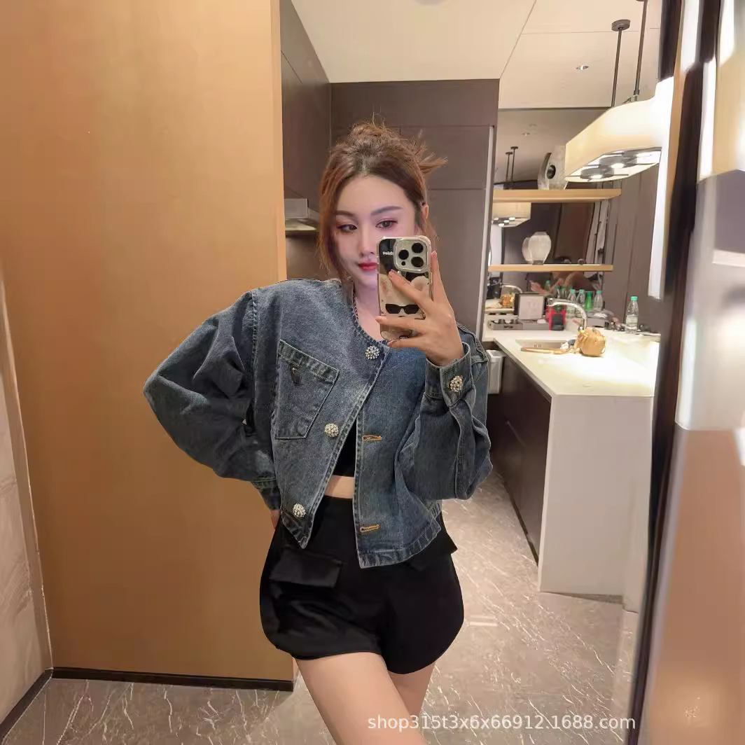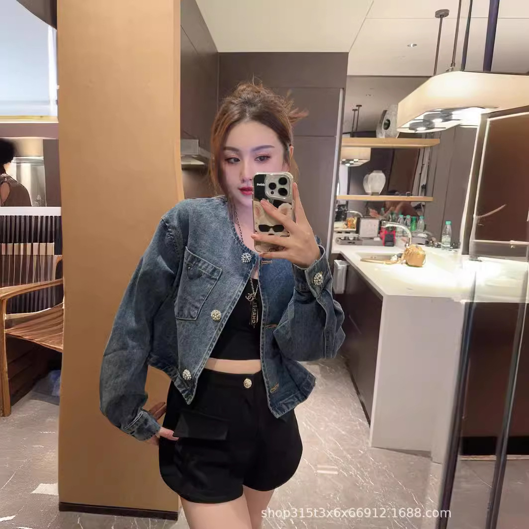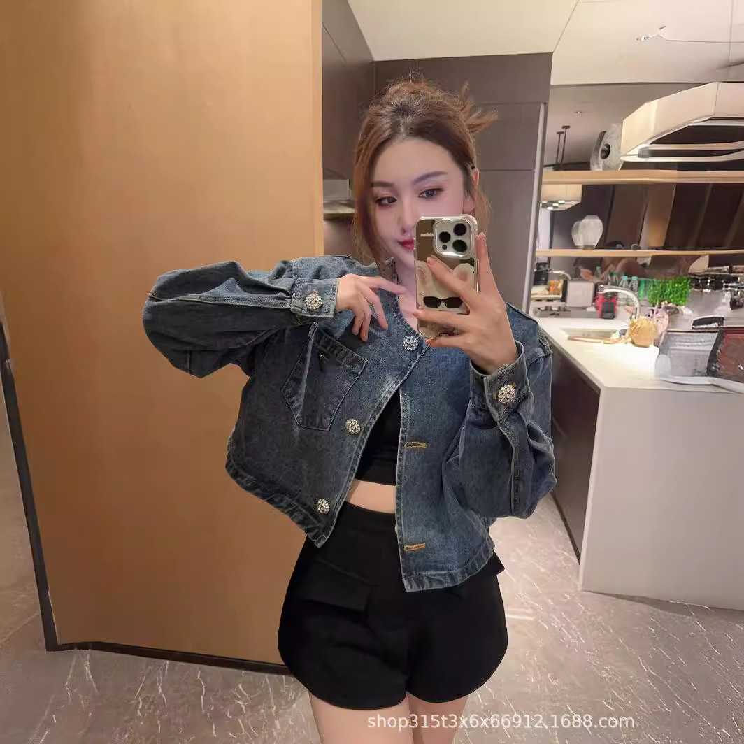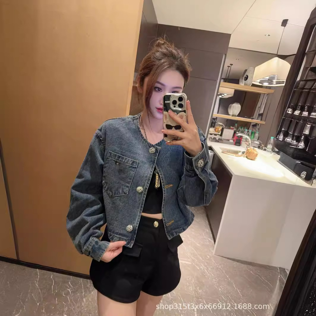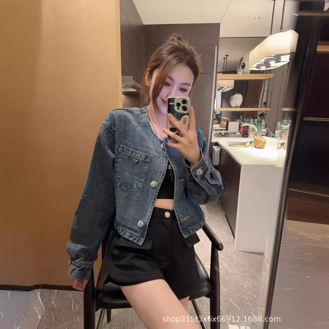 | nameOriginal | p24 spring and summer new niche design simple fashionable short Denim coat slimming all-matching |