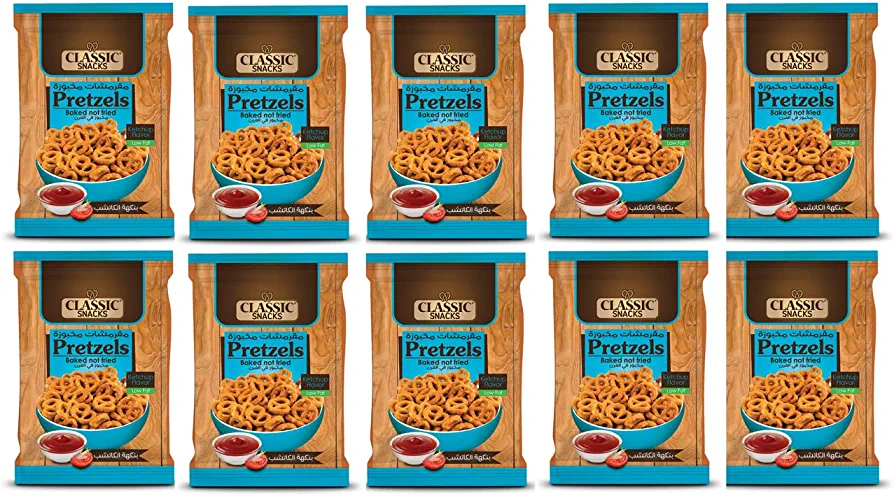 Pack of 10 Classic Snacks’ Ketchup Pretzels, 100% Baked, Low Fat and Calorie Snack, 30gm each.
