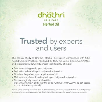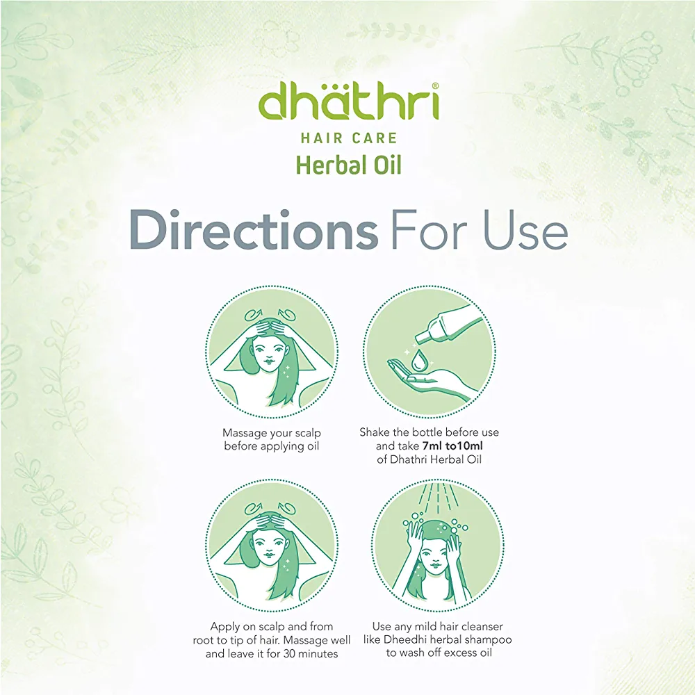 The unique formula of Dhathri Hair Care Herbal Oil helps to prevent hair fall, dandruff, and other scalp problems, while promoting healthy hair growth. Regular use of this oil can help to improve the texture and shine of your hair, making it look and feel healthier and more beautiful.