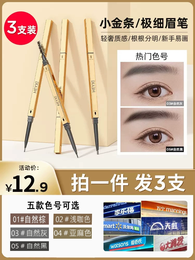 | nameOriginal | Pack of 3, Small Gold Bar Wild Triangular Eyebrow Pencil Waterproof, Long-lasting, Fade-proof, Sweat-proof, and Smudge-proof, Ultra-Fine, Double-Headed |