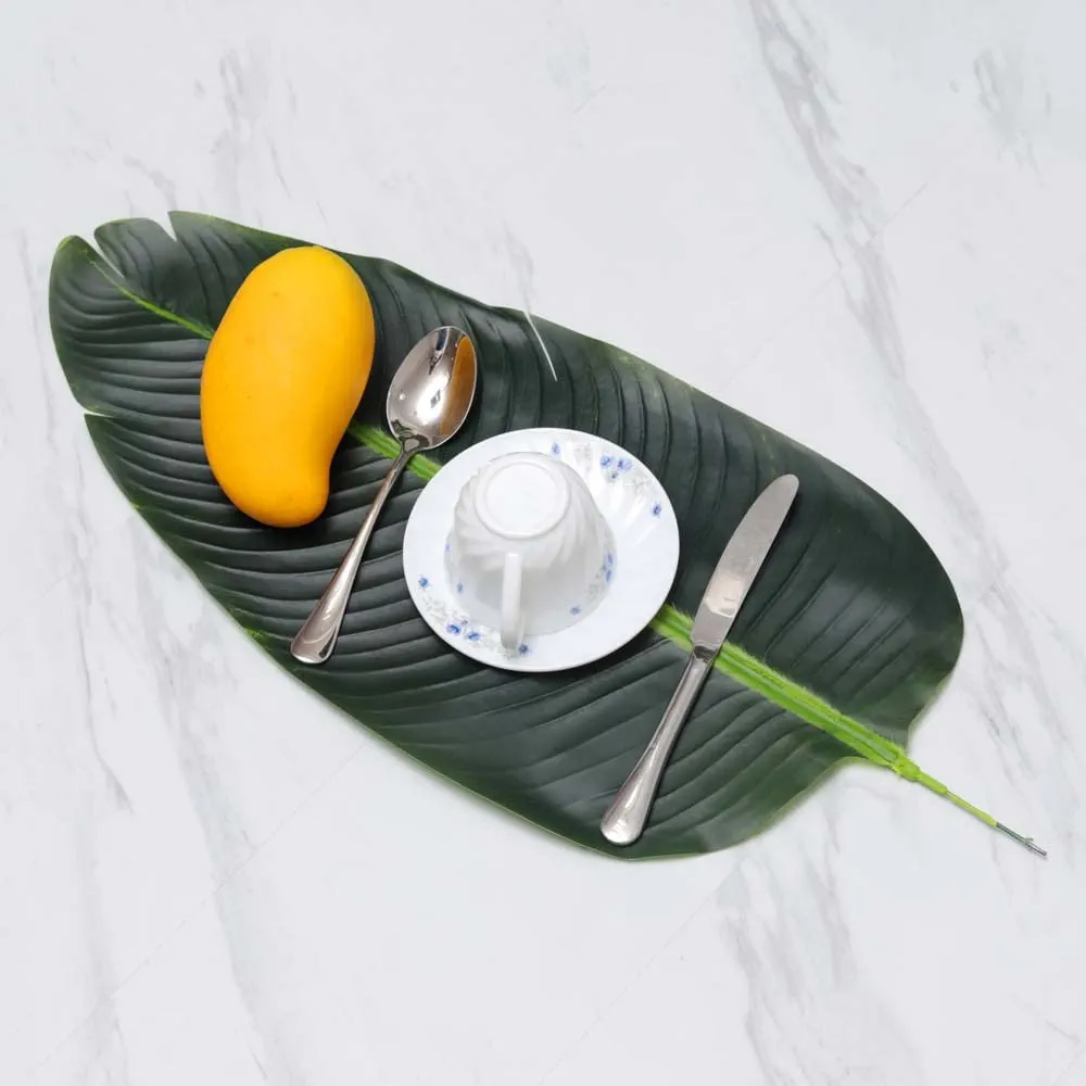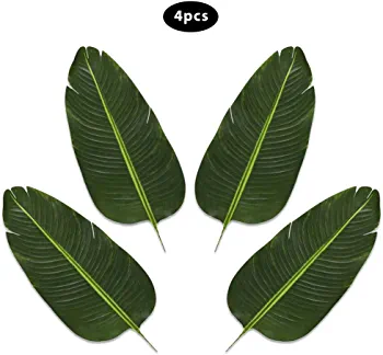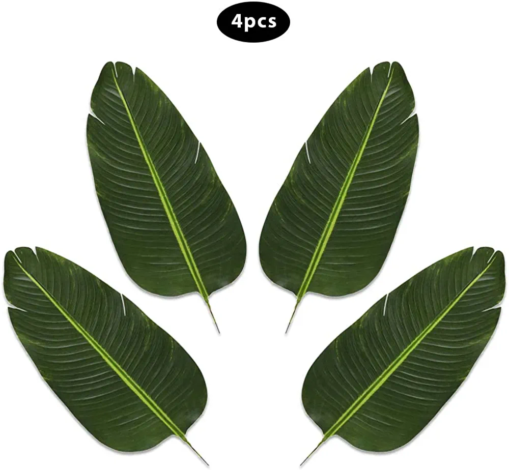 Pack of 4 Artificial Banana Leaves for Wedding, Garden Party, Crafts, and Home Décor.