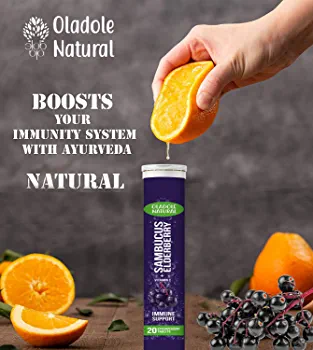 Introducing the Oladole Natural Black Elderberry Sambucus with Vitamin C Immunity Daily Supplement Effervescent Pack of 5 – the perfect addition to your daily routine to boost your immune system. Made with natural black elderberry and vitamin C, this supplement is designed to provide you with the essential nutrients your body needs to stay healthy and strong. The effervescent pack of 5 makes it easy to take on-the-go and dissolve quickly in water for a refreshing and delicious drink. With regular use, you can feel confident that you are doing everything you can to support your immune system and stay healthy. Don’t let illness slow you down – try Oladole Natural Black Elderberry Sambucus with Vitamin C Immunity Daily Supplement Effervescent Pack of 5 today!