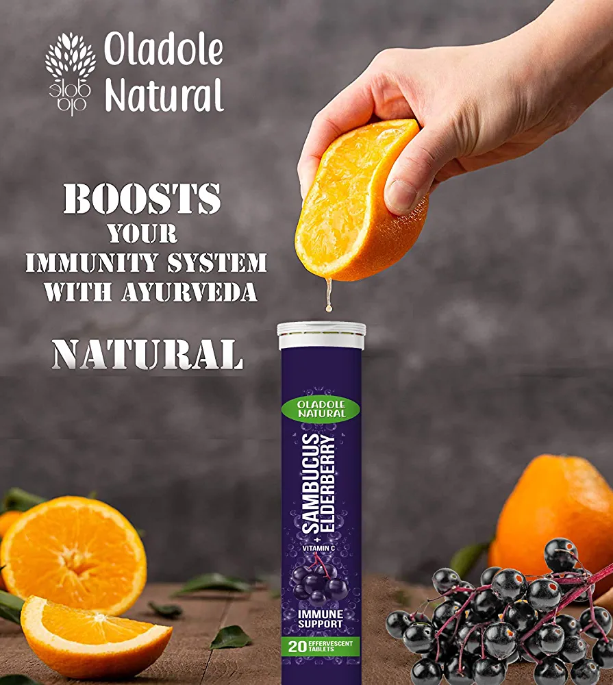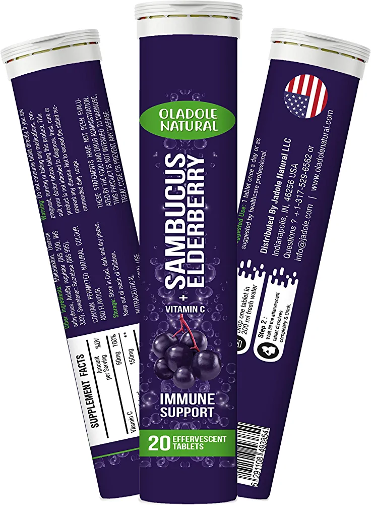 | nameOriginal | Oladole Natural Black Elderberry Sambucus with Vitamin C Immunity Daily Supplement Effervescent Pack of 5 |
