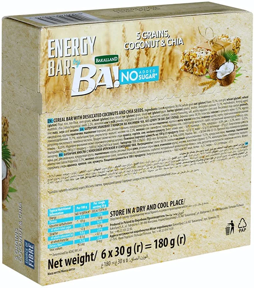 Each pack contains 6x30g bars, making it easy to take with you on the go. Whether you’re at work, at the gym, or on a hike, this energy bar is the perfect snack to keep you going. So why wait? Try BA! Crunchy Energy Bar today and experience the delicious taste and natural goodness of this healthy snack!