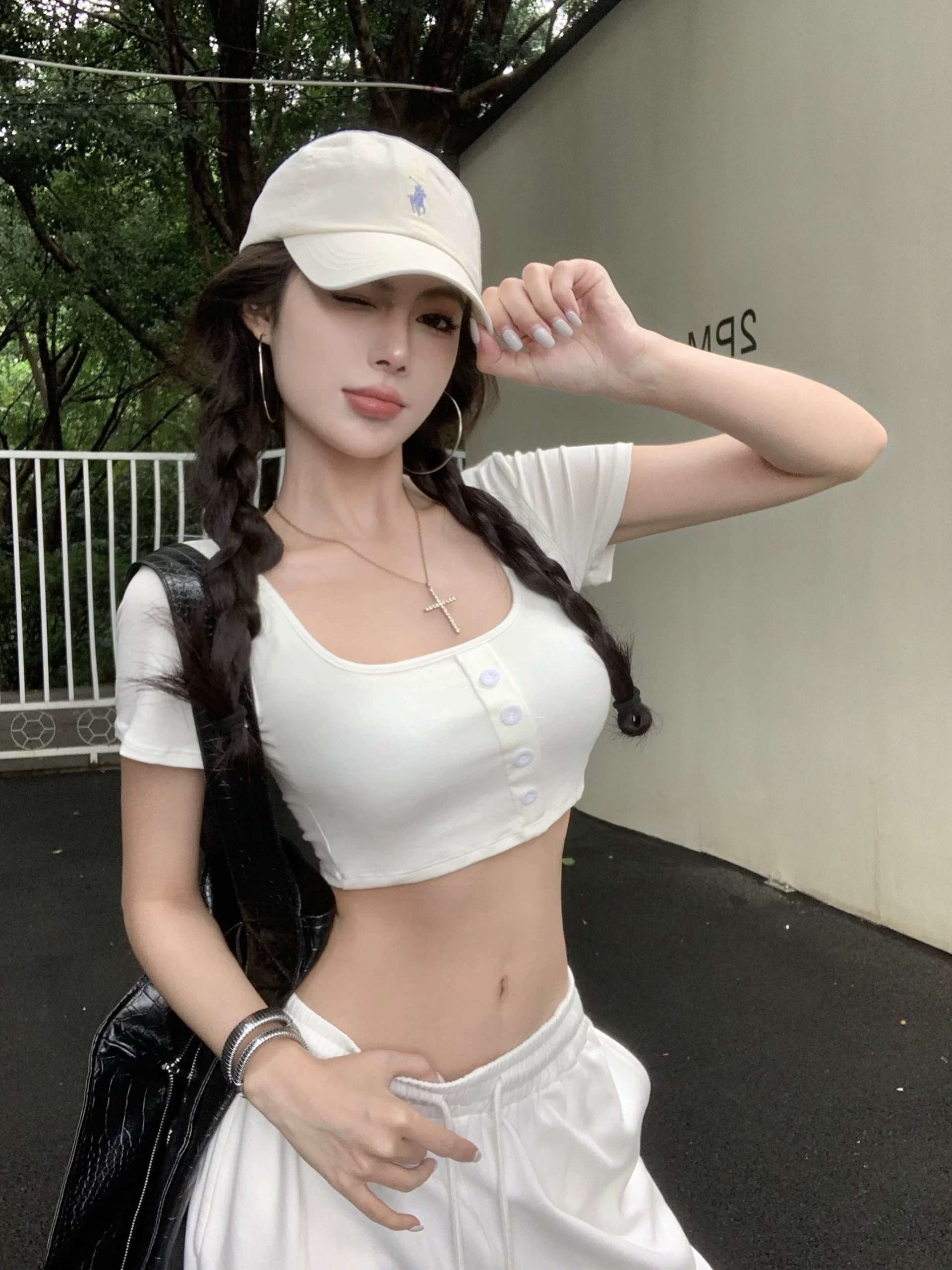 | nameOriginal | Padded shoulder T-shirt summer slim top short sleeves |
