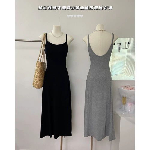 | nameOriginal | Padded suspender dress for women, waist slimming, sexy backless outer wear, sleeveless chic long gray skirt |
