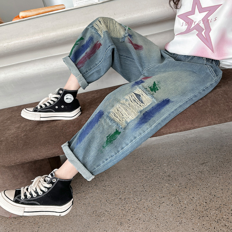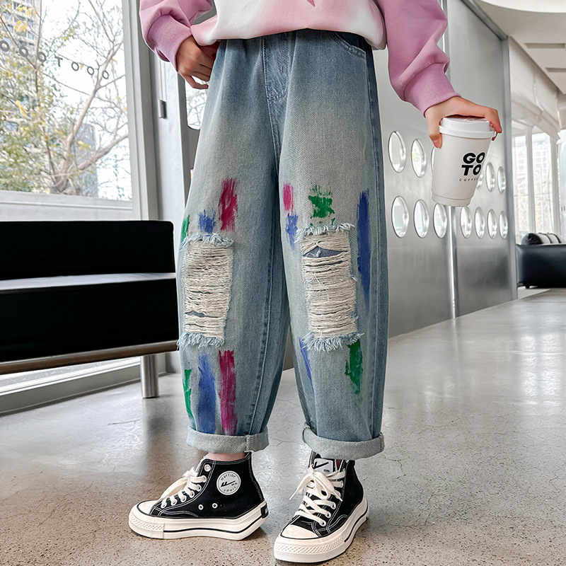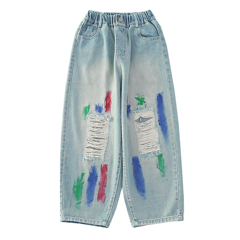 | nameOriginal | Paint Denim Tie-Dye 2024 New Children's Autumn Fashion Loose Pants Children's Western Style Harlan Torre Pants |