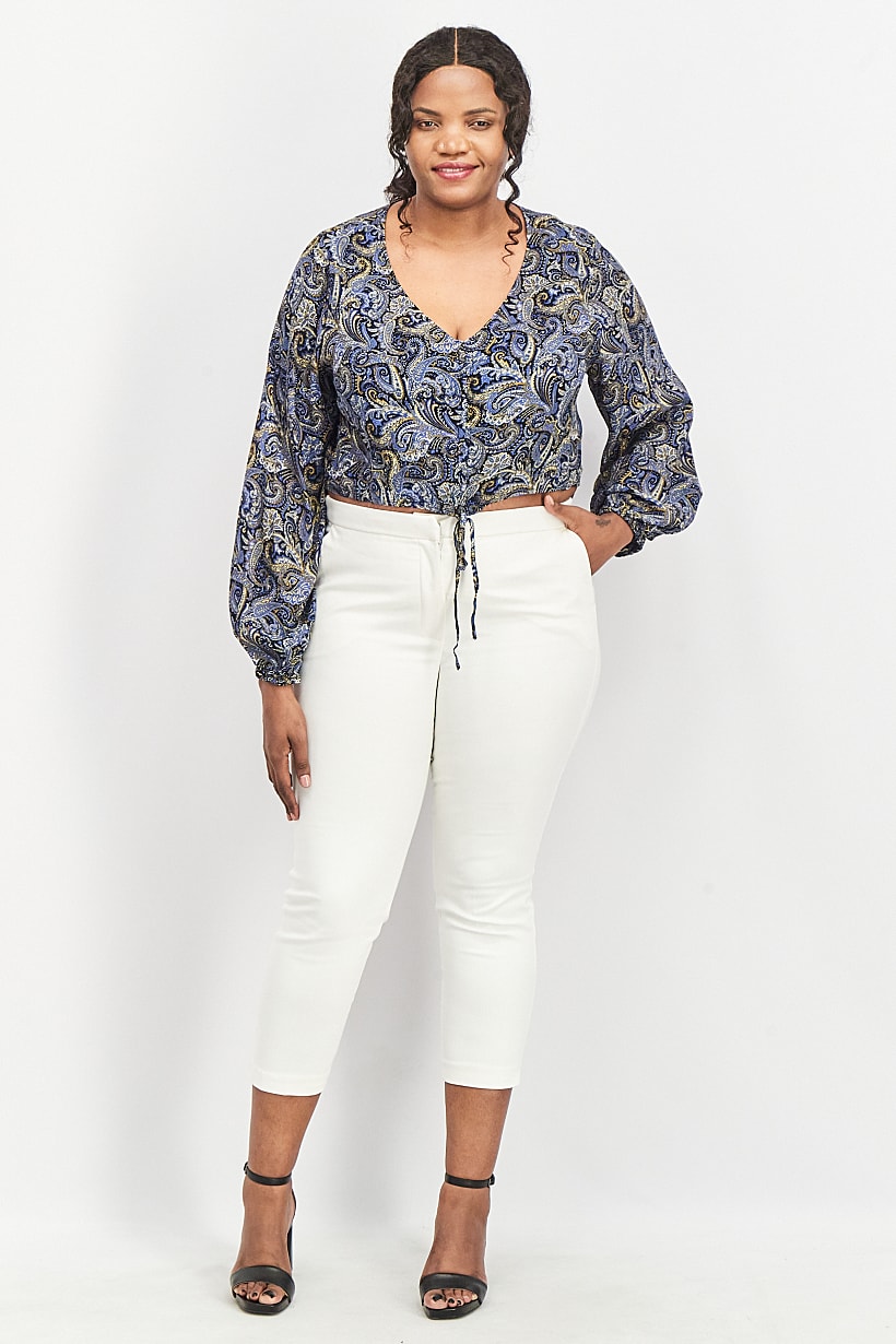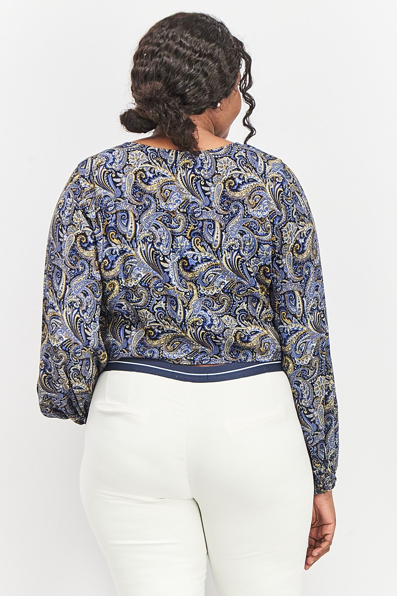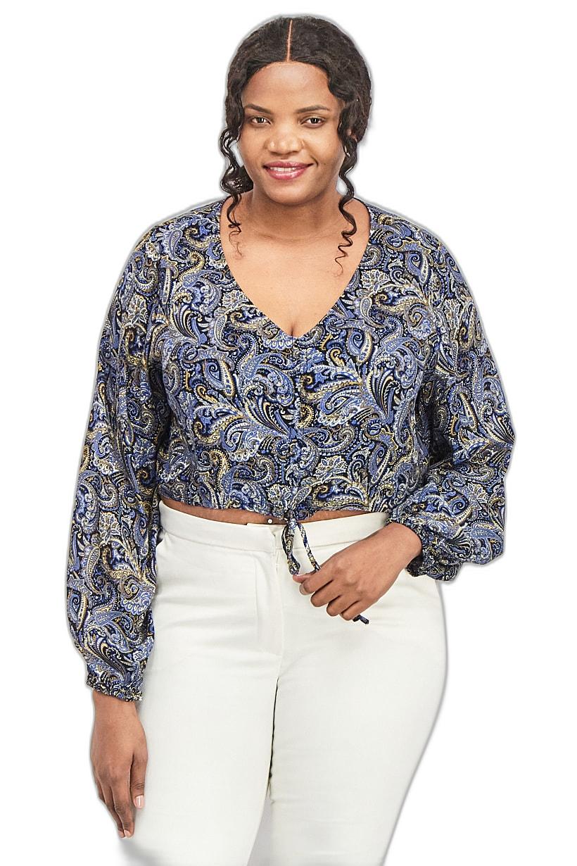| nameOriginal | Women Plus Size V Neck Long Sleeves Paisley Crop Top, Black/Blue Combo |