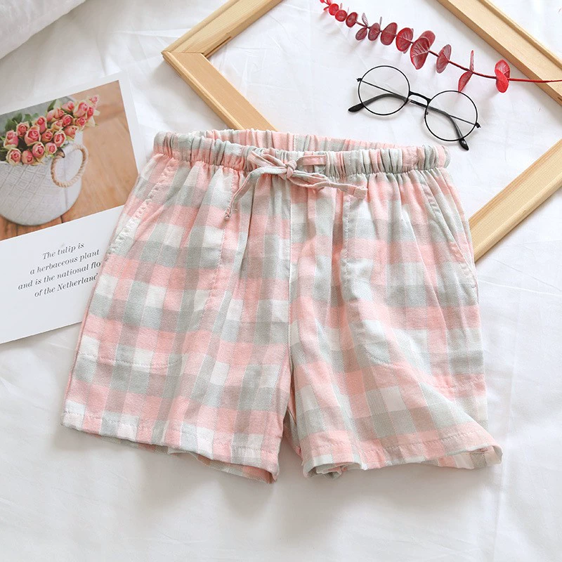 | nameOriginal | Pajama shorts for men and women, summer Japanese style plaid five-point pants that can be worn outside, loose, large size, couple home pants, large pants |