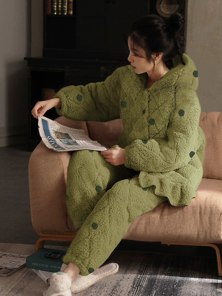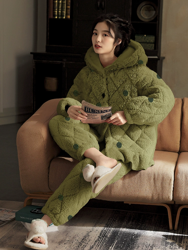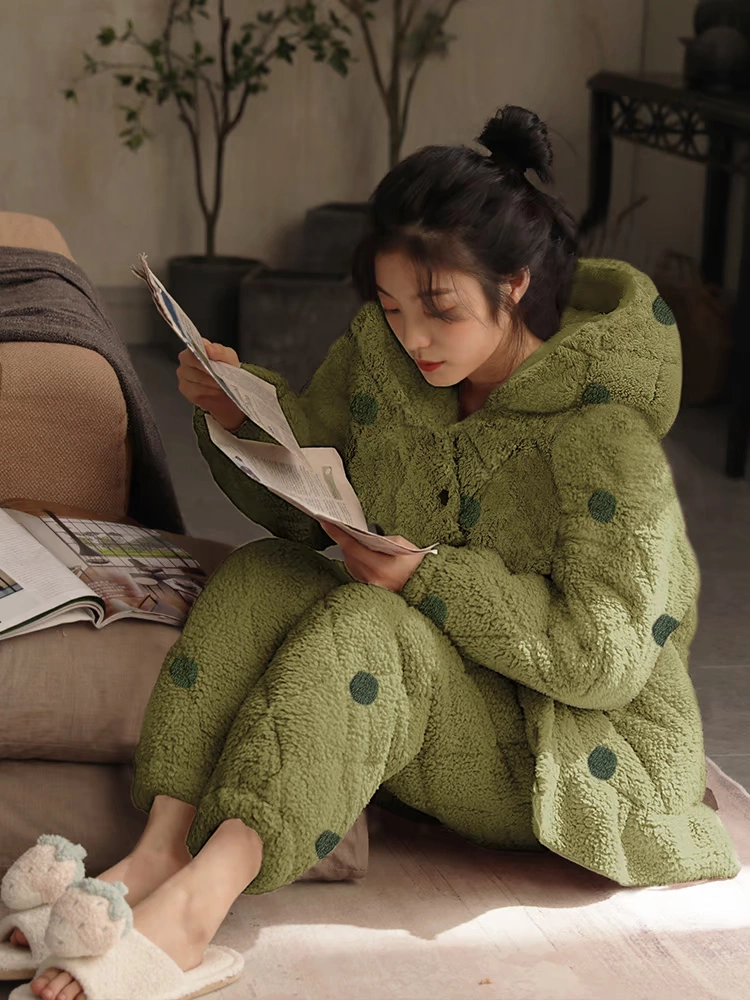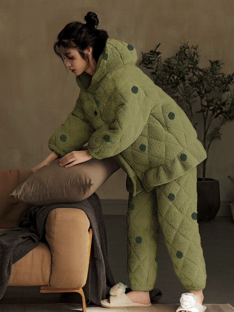 | nameOriginal | Pajama women's autumn and winter coral velvet quilted flannel home wear set thickened and velvet can be worn outside 2024 new style |