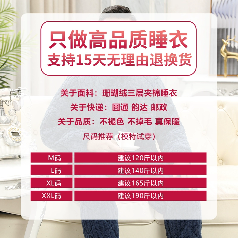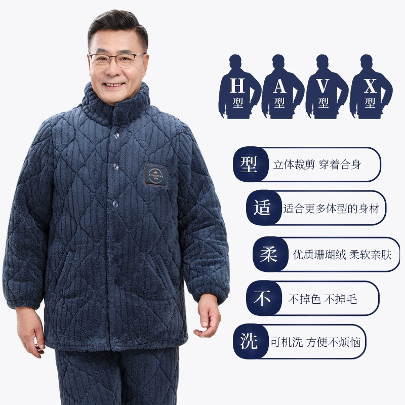 Pajamas 2024 new men's autumn and winter middle-aged and elderly plus velvet thickened coral velvet dad home clothes set
