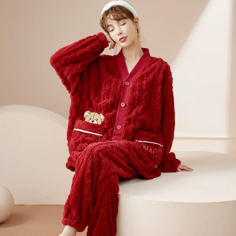 | nameOriginal | Pajamas autumn and winter women's coral velvet plus velvet thickened flannel red women's autumn and winter novel home wear winter |
