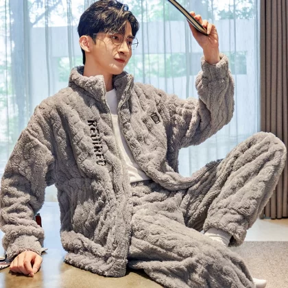 nameOriginal | Pajamas for men 2024 new autumn and winter coral velvet thickened plus velvet flannel winter home wear set |