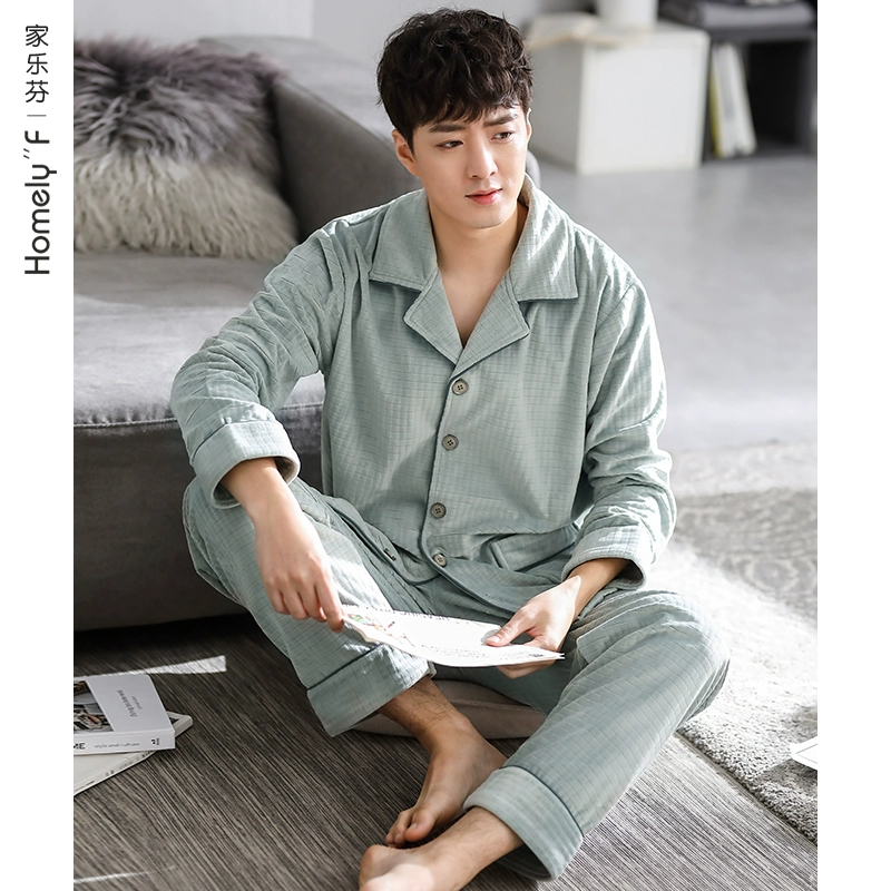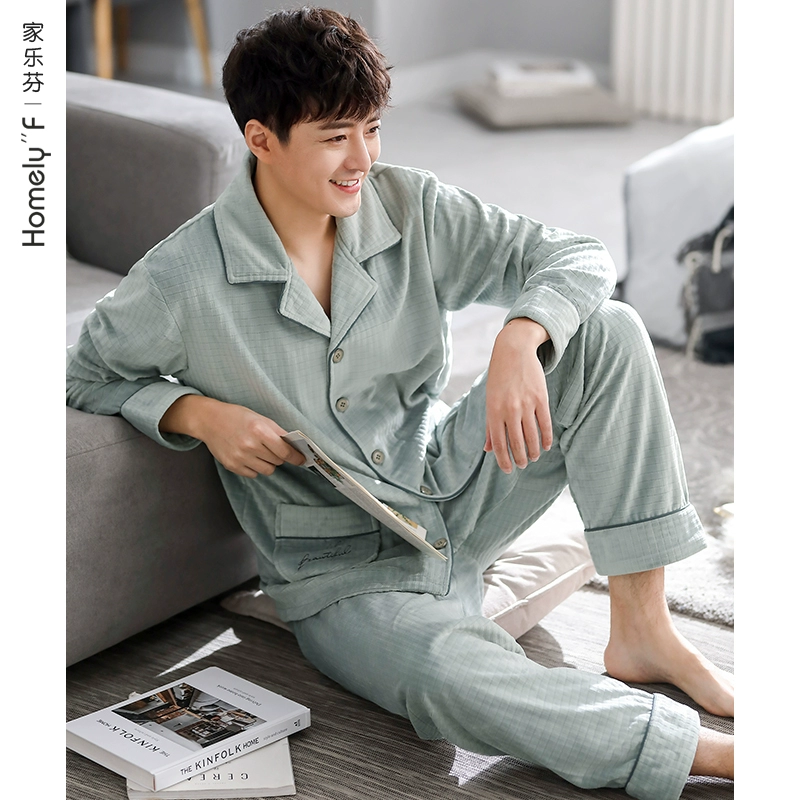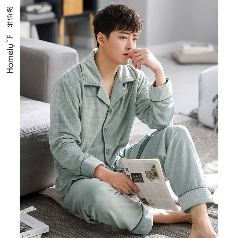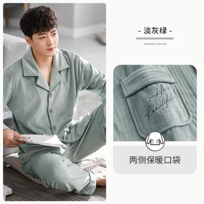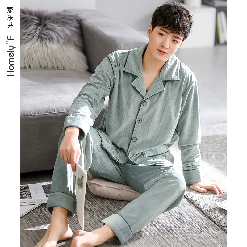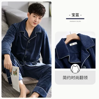 Pajamas for men, autumn and winter, winter coral velvet, thickened velvet, flannel, home clothes, island velvet, thin, spring and autumn.