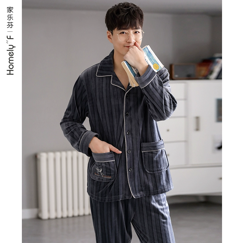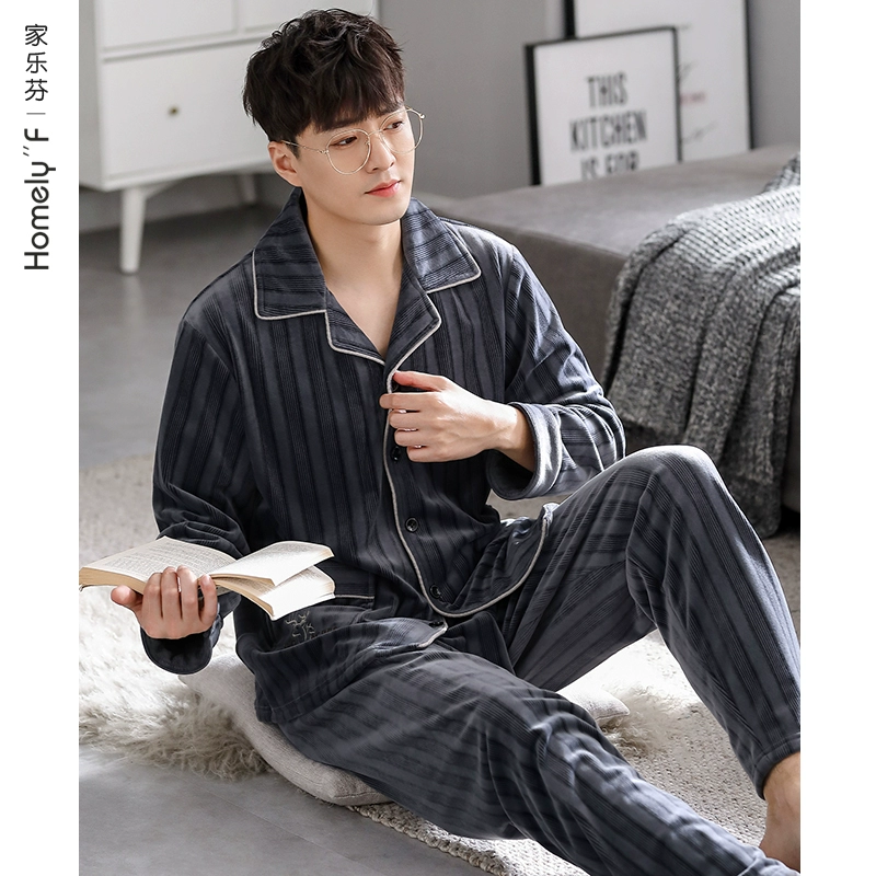 Pajamas for men in spring and autumn thin coral velvet flannel home clothes autumn and winter style winter island velvet thickened plus velvet